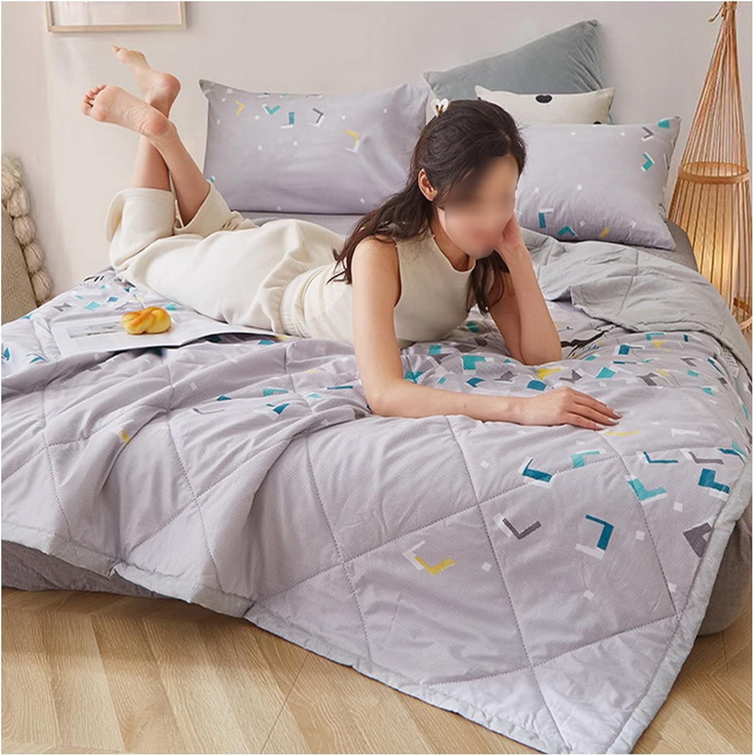 Feature: The summer blanket is made of soft cotton fabric with fine and smooth texture, soft and comfortable, dry, breathable and not stuffy. It's the perfect way to keep cool in the hot summer.Hot Sleep Cool Quilt, widened hem technology, strong and durable, fine workmanship, elegant and generous, and after repeated washing.The entire microfiber cotton filling and ultrasonic quilting process are more solid and make the filling more uniform. Very suitable for college dormitories, offices, sofas, cars, suitable for family travel, outdoor camping, Hotels and other indoor, outdoor and anywhere you want, so it is also a versatile duvet for all seasons.Size:150x200cm180x200cm200x230cmPackage includes:1 x summer duvet (excluding other things)Note: The quilt should be properly packed during transportation. Before use, please take the product out of the package, unfold it completely and pat it evenly, which will help quickly restore the fluffiness.Due to the influence of lighting, shooting and display, the actual color may be slightly different from the picture, please understand!