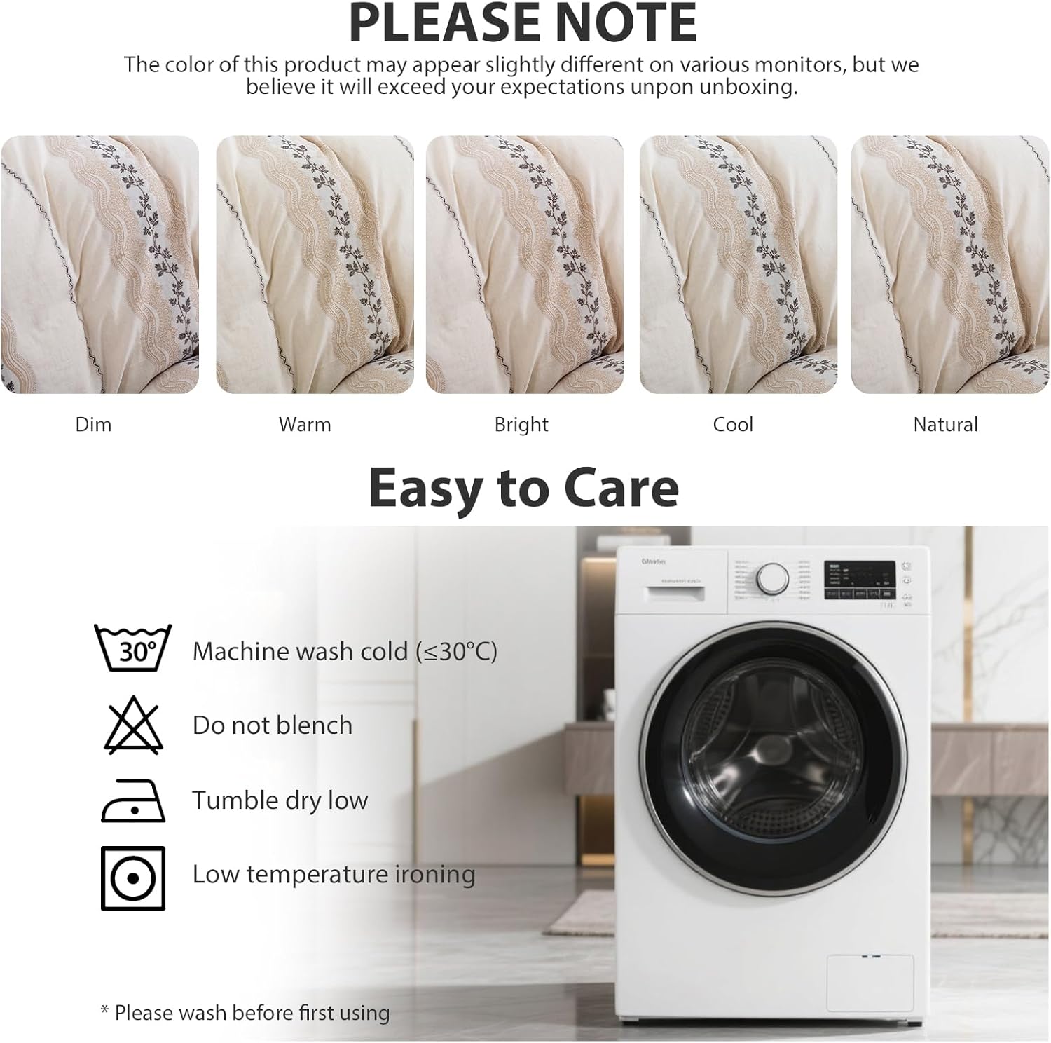 | Product Care Instructions | Do not Bleach, Machine Wash, Tumble Dry Low |
