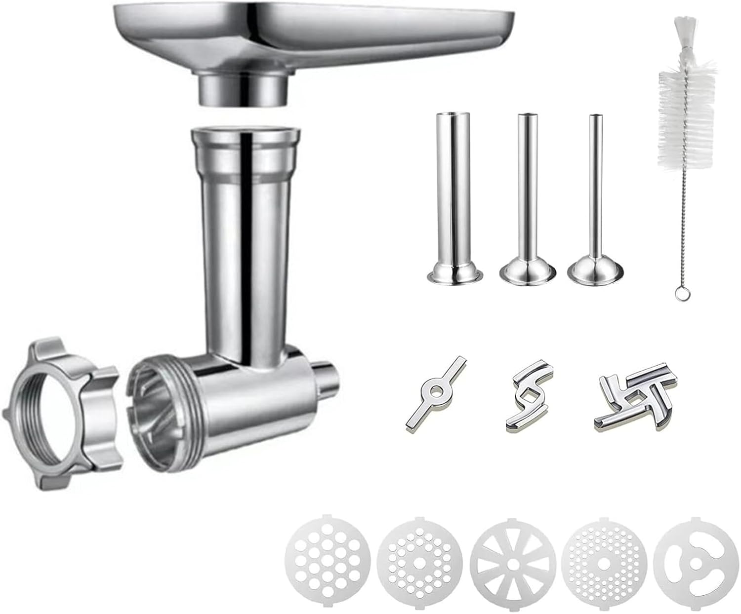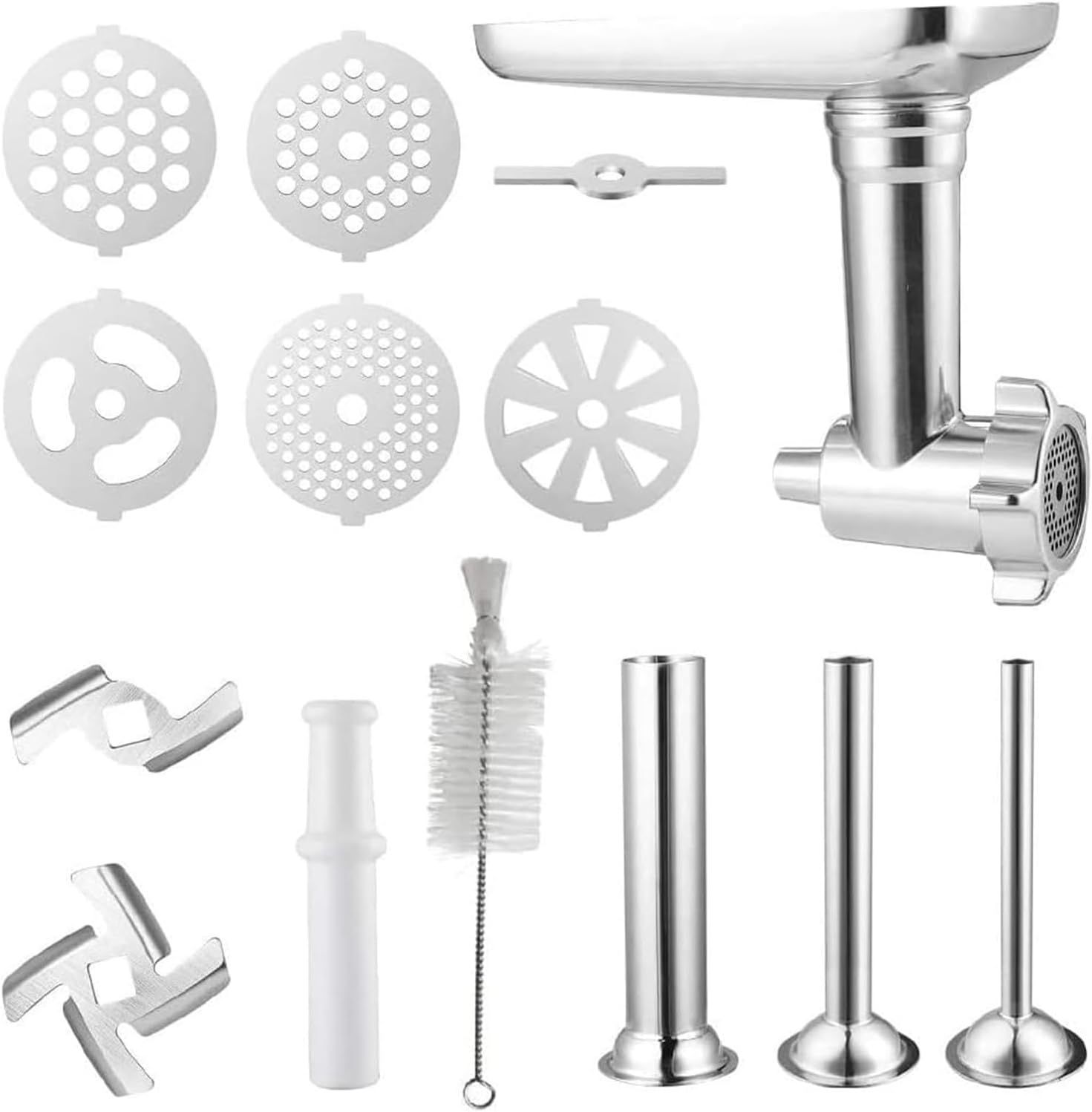 Homemade Sausages Ground Meat Grinder Stuffer Tubes Grinding Attachment For SM-50BC SM-50R SM-50TQ SM-50BL SM-50BKFeatures:Transform your stand mixer into a versatile meat grinder with this attachment, perfect for grinding various meats and creating homemade sausages.Crafted fromhigh stainless steel, this and attachment ensures long lasting use and easy Designed for cooking enthusiasts and professionals in the food industry, this attachment simplifies the process of grinding meats and preparing ingredients.From burgers to meatballs, this meat grinder attachment is a must have tool for grinding meats and creating dishes.Take your culinary skills to the next with this meat grinder attachment, allowing you to explore new possibilities in the kitchen.Specifications:Stainless SteelSize:As Picture ShownFor SM-50 Series、SM-50BC、SM-50R、SM-50TQ、SM-50BL、SM-50BKPackage Includes:1 Set Metal Food Grinder AttachmentsNote:①.Please allow 1-2cm errors due to manual measurement, make sure that you do not mind before you order. ②.Due to the difference between different monitors, the picture may not reflect the actual color of the item.Thanks for your understandings.