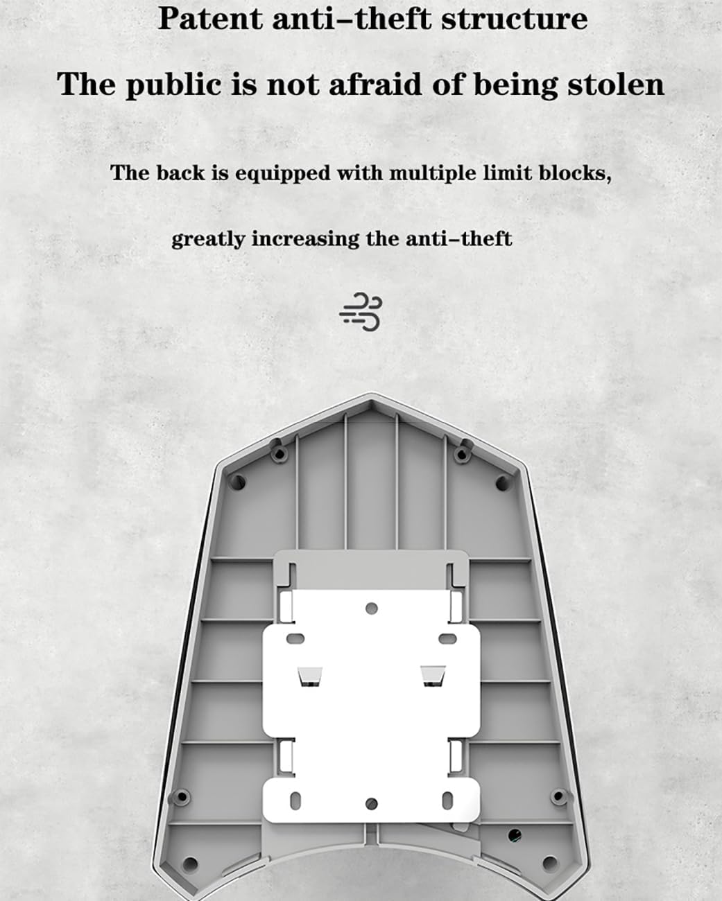 Patented air collection structure 8 -10 seconds for fast hand drying Bi-directional stacked wind Patent anti-theft structure Reduced wind noise 304 mirror stainless steel Dual-port pressurised, bi-directional airflow Super noise reduction, as low as 65dB-75dB Extended HEPA filter, effectively filter dust, fluff, dust and other six pollutants Patented anti-theft structure, with multiple limit blocks on the back, greatly increasing the anti-theft Product Parameters: Name:Sensor Hand Dryer Product Condition:Brand new Product Model: Shell Material:304 stainless steel Power:1100W Color:silvery Sensing distance: 8-10cm Hand drying time: 8-10S Waterproof grade: IPX1 Product inner box:37*33*23.5cm Gross weight:5.13KG Net weight:4.5KG Package Include: 1 x Hand Dryer 1 x Instruction Manual