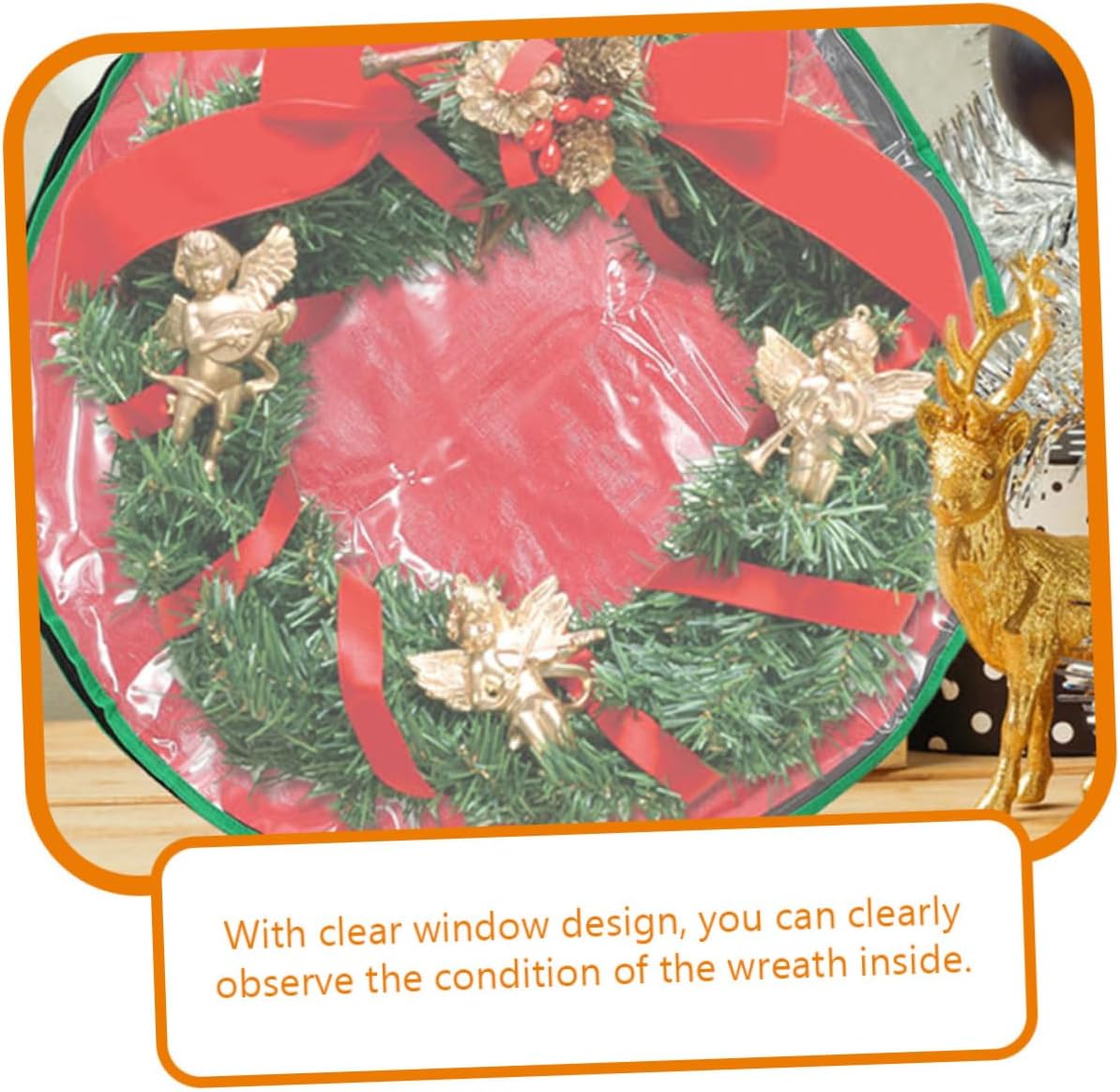 Package List 4 x wreath bag Features -Color:Red Round Storage Bag -Material:PET, PVC Garland Bag -Size:60.00X60.00X18.00cm/23.58X23.58X7.07in Wreath Organizer - Large size, it will meet your storage requirement. Suitable for Christmas wreath, present and more Garland Pouch. - Large capacity design, this holiday wreath storage bag can hold many wreaths at on time Xmas Garland Storage Pouch. - With clear window design, you can clearly observe the condition of the wreath inside Present Bag. - You can also use this round large wreath storage bag to pack up the Xmas present, jewelry, etc Xmas Wreath Storage Container. - There are two carry straps on the package pouch, and you can easily carry the pouch Holiday Wreath Bag.Goods InformationPresent Bag Are you looking for a storage bag for your wreath? If your answer is yes, you should come and take a look at this product.Round Garland Bag It will meet your needs.Xmas Garland Storage Bag The bag is made of excellent materials, which is and . present Bag The material enjoys the strong durability, not easy to torn up. Garland Container Specially designed for your wreath.Artificial Wreath Storage Bag Can be used to store , wreaths, bells, etc