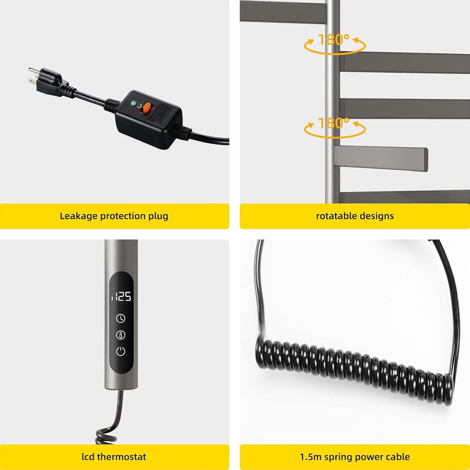 Discover the ultimate comfort with our advanced heated towel rack, designed to keep your towels and clothes at a gentle, inviting temperature, even in the coldest weather. Say goodbye to damp, unhygienic towels and enjoy the luxury of warmth at your fingertips. With a convenient timer feature, you can easily set your towel rack for safe and hassle-free operation, enhancing your daily routine.This heated towel rack seamlessly fits into any bathroom décor and is perfect for a variety of settings, including homes, hotels, gyms, and pools. Imagine stepping out of the shower or after a swim to envelop yourself in a warm, cozy towel. It‘s also ideal for warming blankets and jackets, ensuring you stay comfortable during colder months. Elevate your living experience with this practical and stylish addition to your space.Specifications: - Name: Heated Towel Rack - Dimensions: 29.9 x 17.7 x 3.5 inches (76 x 45 x 9 cm) - Temperature Range: 30-70 °C - Timer Range: 1-9 hours - Finish: baking paint surface - Voltage: 110V-240V - Power: 120W - Feature: 180° rotatable bracketPackage Includes: 1 x Heated Towel Rack 1 x Pack of Fixing Parts (note: nail-free adhesive not included but easily obtainable) 1 x English ManualNote: We recommend professional installation for hard wiring to ensure your safety.