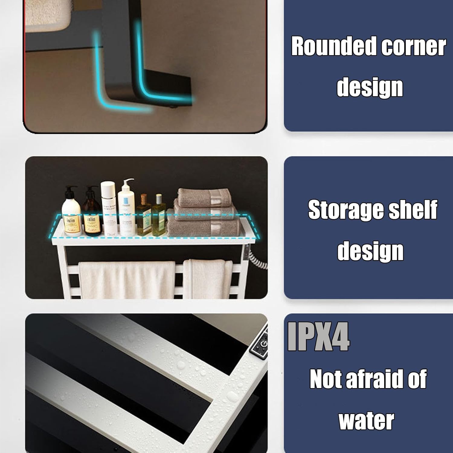 Experience the ultimate in comfort and convenience with our Household Electric Heated Towel Rack, a stylish and functional addition to your bathroom, kitchen, or any space where warmth is desired. Available in elegant white and sleek black, this stainless steel towel drying rack not only enhances your décor but also transforms your daily routine. Imagine stepping out of a shower or bath and wrapping yourself in a warm, dry towel. With a power output of 70W, our towel heater efficiently warms your towels to a comfortable temperature of 55 °C (131 °F). The innovative carbon fiber heating technology ensures fast and even heat distribution, allowing you to enjoy the luxury of warmth at any time of day. This versatile towel bar is designed with your lifestyle in mind. It features a user-friendly timer that allows you to choose between 4, 6, or 8-hour heating durations, ensuring your towels are ready when you need them most. Whether you’re using it in the bathroom, kitchen, balcony, toilet, or even at a hotel or swimming pool, its simple yet modern design fits seamlessly into any environment. Installation is a breeze with included accessories, making it easy to set up in any desired location. Elevate your bathing experience and enjoy the multitude of benefits that our Heated Towel Rack offers. Say goodbye to damp towels and hello to a new level of comfort and luxury. Note: Please allow for minor size variations due to manual measurement and slight color differences based on monitor settings.