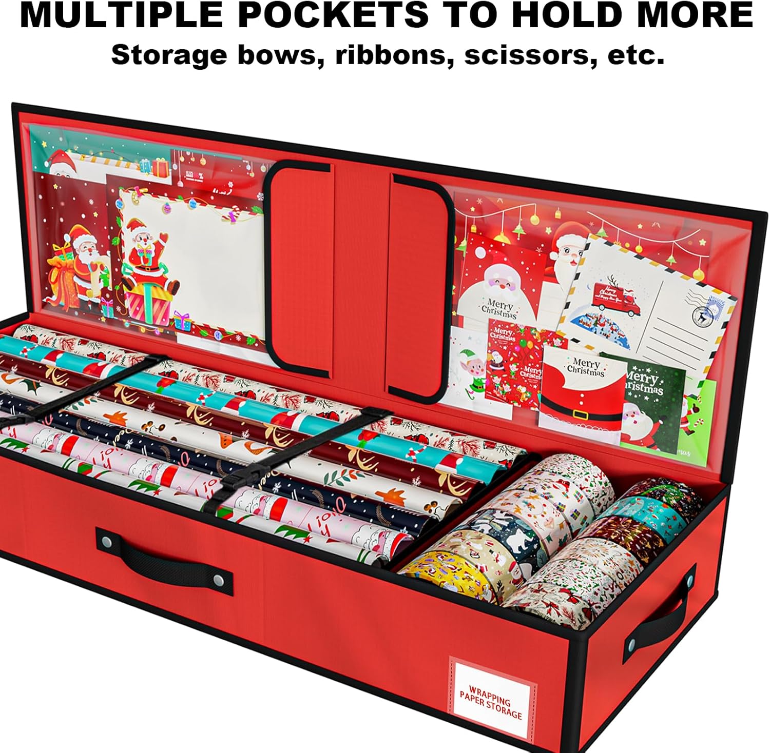 Let KYEVIS christmas organiser solve your gift wrapping paper mish-mash woes!This wrapping paper organiser measures 102x34x14 cm and holds 18-24 rolls of standard wrapping paper. Christmas wrapping paper box will keep all your gift wrap rolls, Christmas decorations and accessories neatly organized