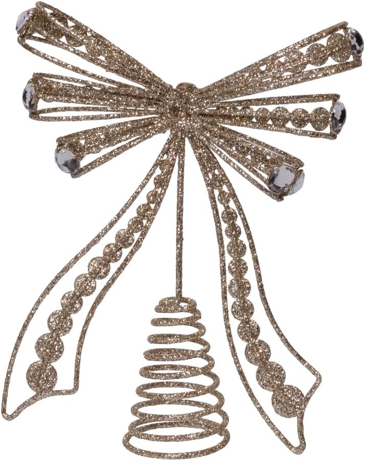 This decorative bow treetop from Kurt Adler is designed to crown a tree or seasonal display, adding refined sparkle, texture, and elegant visual impact.