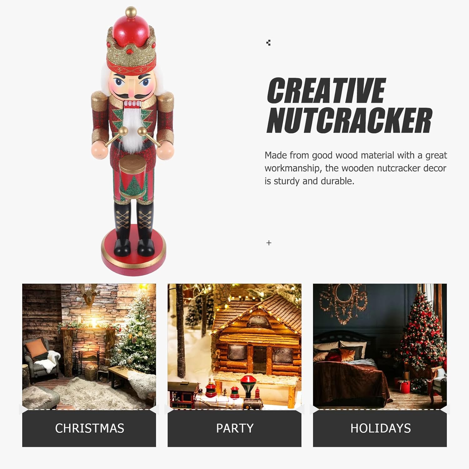 Package Include 1 × Wood Nutcracker Ornament Features -Color:Multi -Material:Wood -Size:37.50X10.50X9.00cm/14.74X4.13X3.54in -Product Info:Nutcracker puppet - It can bring a cheerful ambiance for Christmas, accompany you to spend a happy and unforgettable festival desktop nutcracker decoration. - Made of good and materials, the nutcracker ornament is and not easy to break. - This nutcracker statue is and realistic, full of Xmas breath, and can be used as an Xmas party table decoration nutcracker craft. - You can put it on shelf, tabletop, desktop, to add more charm and beauty to your room on Xmas nutcracker table centerpieces. - The wood craft nutcracker is also a perfect gift for your , and they will love it as the item is lovely and interesting nutcracker figure.Goods Descriptionnutcracker decor This nutcracker statue is and realistic, and is shaped into a lovely appearance.Wood Nutcracker Craft The classic Christmas nutcracker appearance design makes it conform to the Xmas theme.nutcracker statue This nutcracker ornament will be an excellent ornament to create the Christmas atmosphere