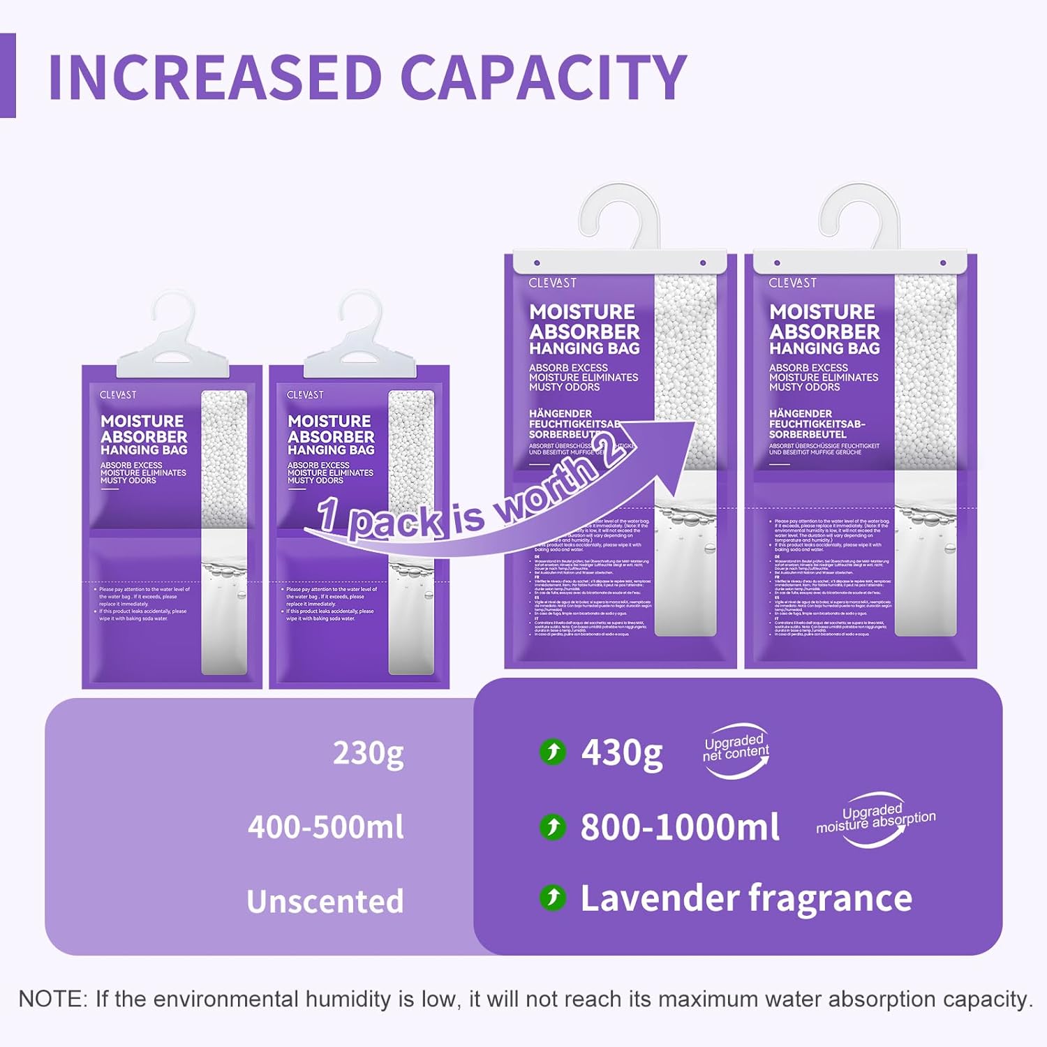 CLEVAST Moisture Absorber Boxes Unscented and Bags Lavendar