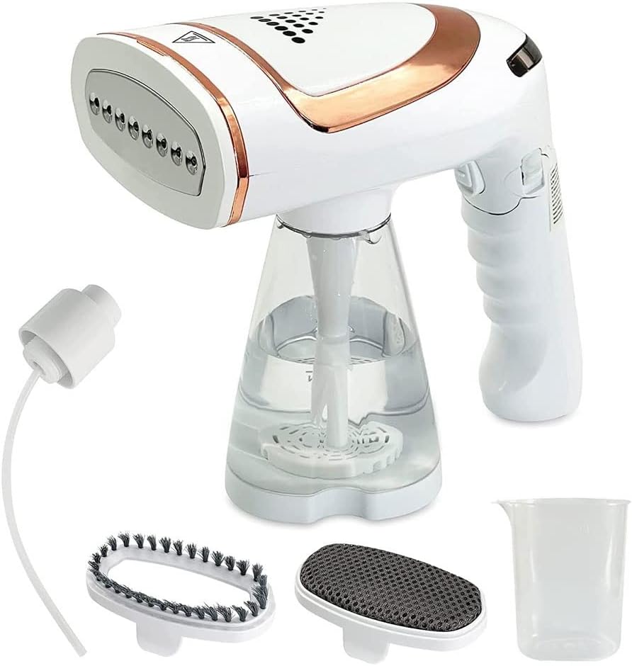 Features:1. Upgraded version of 1600W high power;2. Continuous steam;3. With hanging ironing and flat ironing in one, it can also be used as a small humidifier;4. The handle of the host can be folded, making storage more convenient;5. Visible 200ML separated water tank, mineral water bottle can replace the water tank when traveling out;6. The host is compact, lightweight and portable;7. Upgrade 7 steam outlets to 8;8. Comes with a large 200ml water tank, which can substitute a 350ml mineral water bottle.Specification:Panel material: stainless steelPower: 1600WProduct size: 18*9* 17cmPower cord length: 1.65mWater tank capacity: 200mlWarm-up time: 40SWeight: 0.87KGComplete set of accessories: 1 host +1 flannel brush +1 hair brush +1 measuring cup +1 manual +1 water bottle connectorThank you very much for your trust and support, and I wish you a happy life.