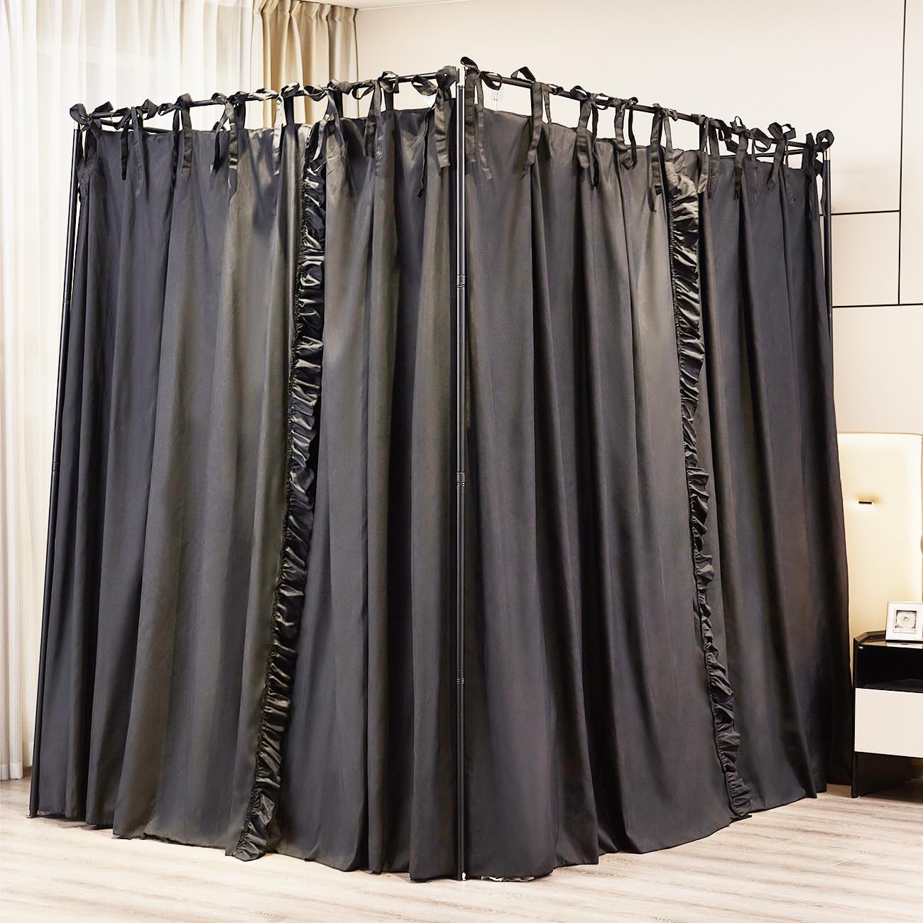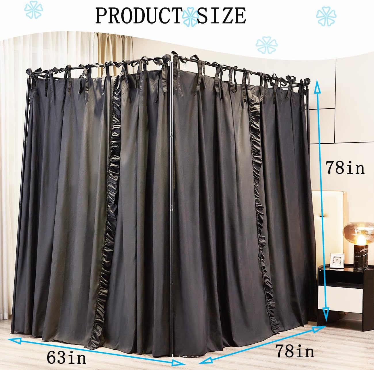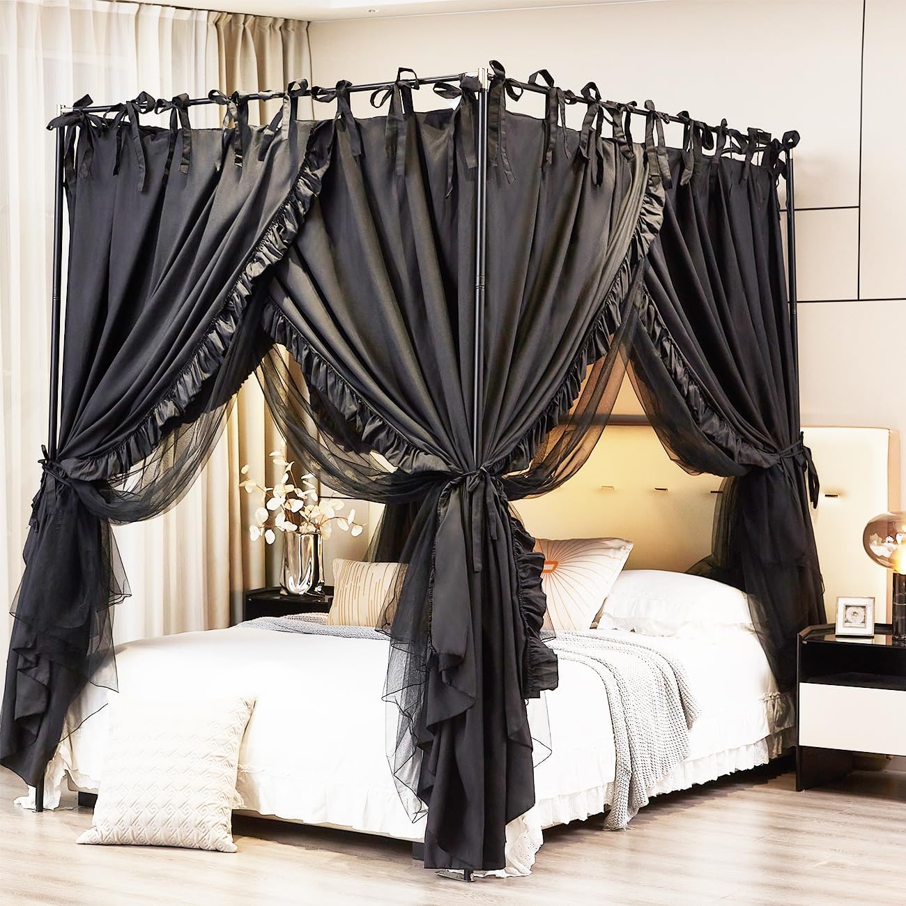 Akiky 4 Corners Post Canopy Bed Curtains Double Layer Cozy Drape Netting 4 Opening Mosquito Net Mesh for Girls Bedroom Decoration(Black,Queen)(Not include poles)
