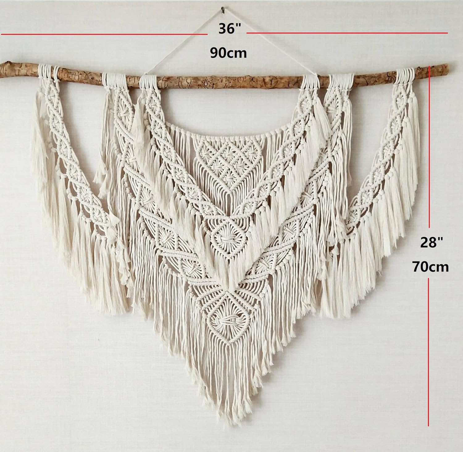 Description: 1.This macrame wall hanging is the perfect bohemian style decor piece to hang in your living space, above your bed. 2.Each Macrame is handmade & each tapestry is unique and have their own characteristics. 3.Simple shape at first sight, rope art, background, wall decoration, Nordic style, home wedding, decorative background wall decoration, sofa background decoration Specification: Name: large macrame wall hanging tapestry Style: bohemian Handicraft: hand woven Use scene: Study, hallway, bedroom, living room, home , dining room, conference room, hallway, hotel, Lobby Size:36" W X 28" L Material:100% cotton Package Contents: 1×tapestry . Note: 1. Light shooting and different displays may cause the color of the item in the picture a little different from the real thing. 2.Please allow slight deviation for the measurement data.