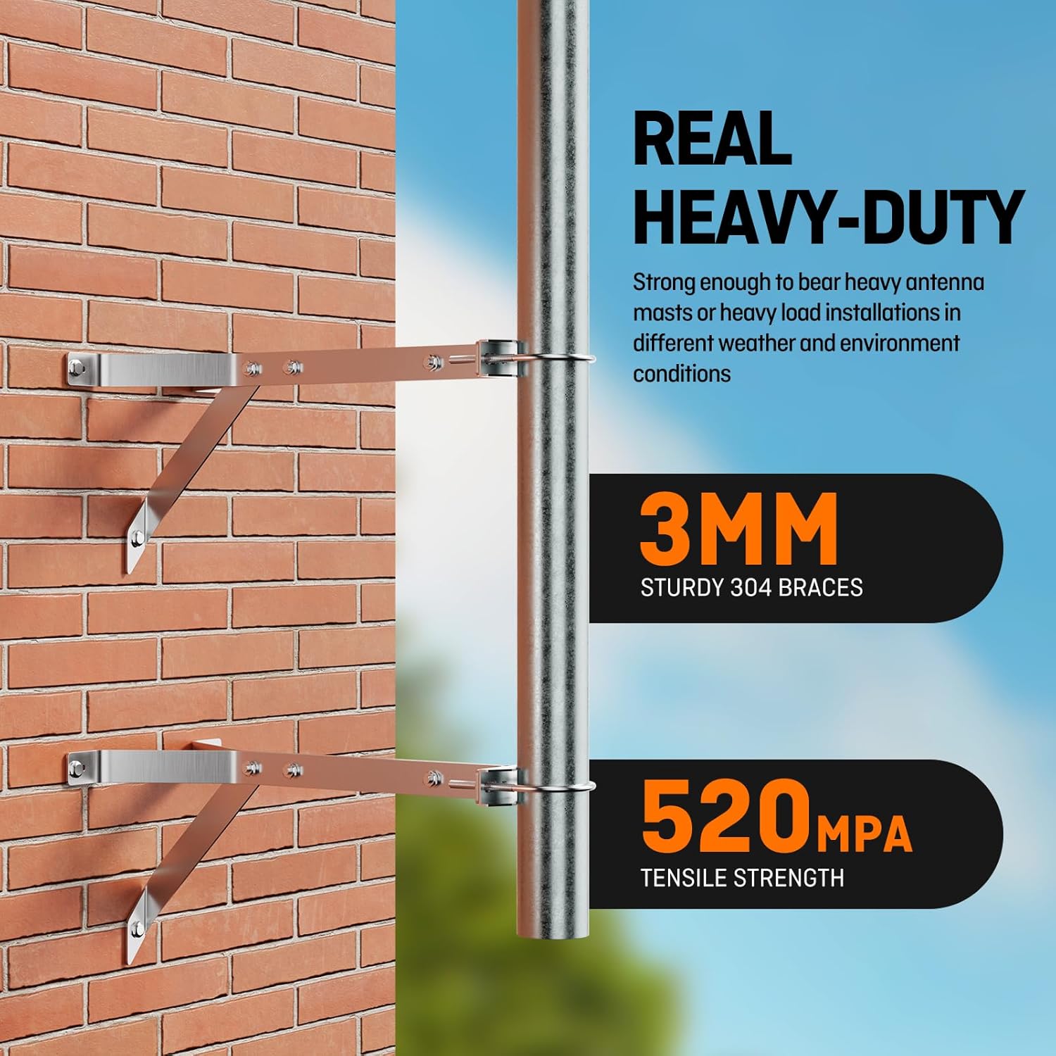 ★ Antenna Mast Mount Set —— Heavy-duty pole OD 1.25 inches and matching mount bracket for outdoor antennas (signal booster, yagi, expansion kit) & weather station & digital signal installation! ★ PRODUCT ADVANTAGES ☆Trustworthy and durable materials ☆Thicker and extended pole size ☆Heavy-Duty and stable design ☆Updated brackets and hardware ☆Versatile mounting options After-sale Service:Please allow slight tolerance in size, color, and weight between the product and our description.If you need assistance after purchasing our product, please contact us.