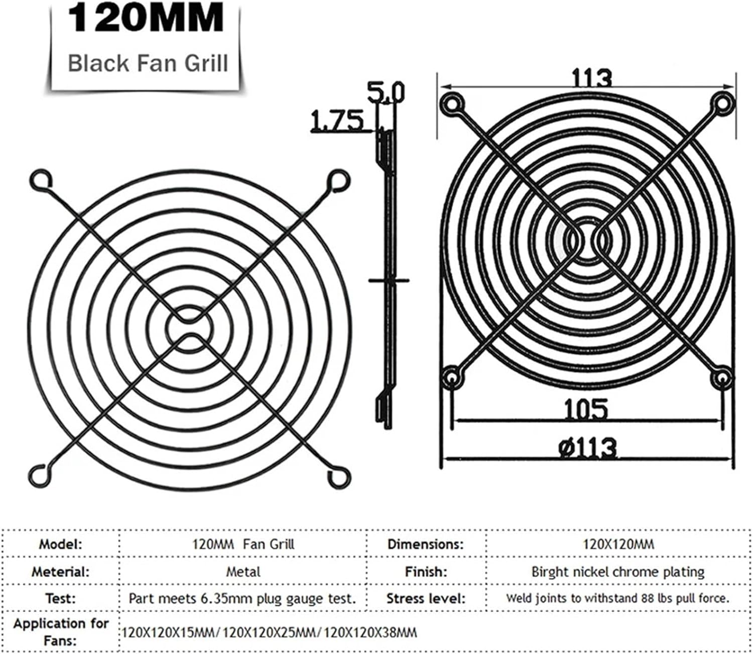 Radiator Fan MotorsFeatures:Widely Used in: Cooling FanAs for the Protective Net, it could protect your cooling fan blades avoid damage from foreign objectsParameters:Item name: Fan GrillsDimension:120x120mmColor:BlackPackage Include:(Pls make sure the SIZE of grillas your demand,we only send the actual qty and size as your choice)10PCS 120mmFan Grills
