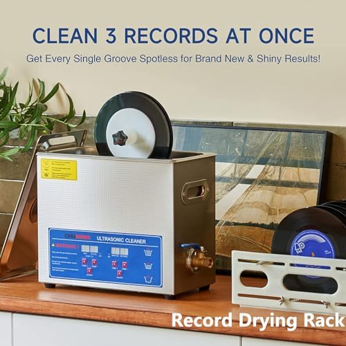 Introducing our advanced Record Cleaner, designed for audiophiles who cherish the quality of their vinyl collection. With a generous 6L capacity, this cleaner effortlessly accommodates multiple records, ensuring every groove is treated with care. The powerful 180W motor and 400W heating power provide optimal cleaning performance, reaching temperatures up to 176°F (80°C) for effective dirt and grime removal. Equipped with a 40kHz ultrasonic frequency, this record cleaner penetrates deep into the vinyl surface, lifting dust and debris without causing any damage. The adjustable time setting ranges from 0 to 30 minutes, allowing you to customize the cleaning process based on your records' needs. Measuring 36.8*34*16 cm (14.5*13.4*6.3 in), this sleek and compact design fits seamlessly into your home audio setup. The 32.5*17.6*15 cm (12.8*6.9*5.9 in) water tank ensures you can clean multiple records in one go, making it perfect for collectors who value efficiency. Experience the joy of pristine sound quality with our Record Cleaner. Whether you're preparing for a listening session or maintaining your collection, this cleaner is an essential tool for preserving the integrity of your records. Invest in the longevity of your vinyl and enjoy the rich, authentic sound that only well-maintained records can provide.