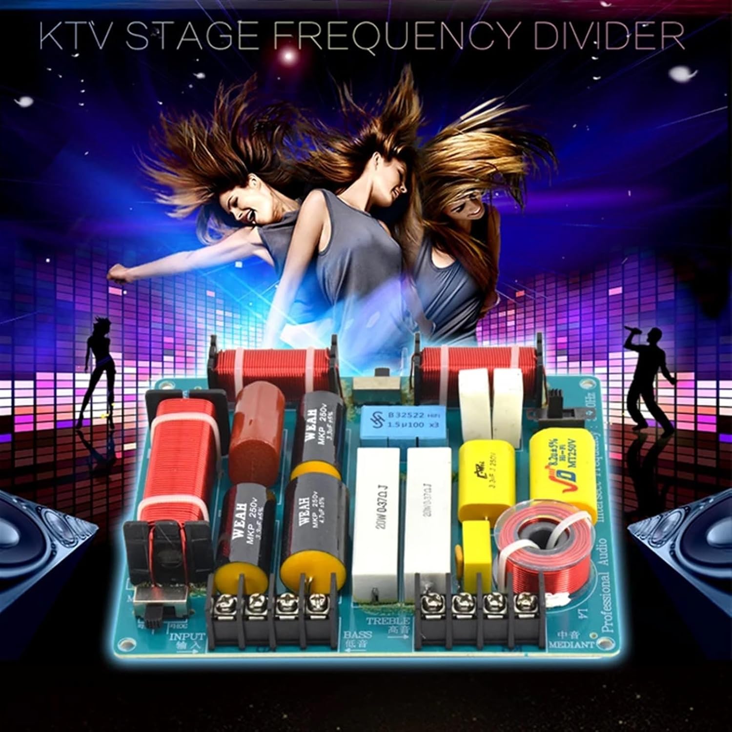 Frequency DividersSpecificationsProduct Name: 3 Way Frequency DividerFrequency Response: 40Hz-22KHz Impedance: 4-8 ohmPeak Power: 350WWeight:550g/PiecePackage Included:1 Piece Frequency Divider