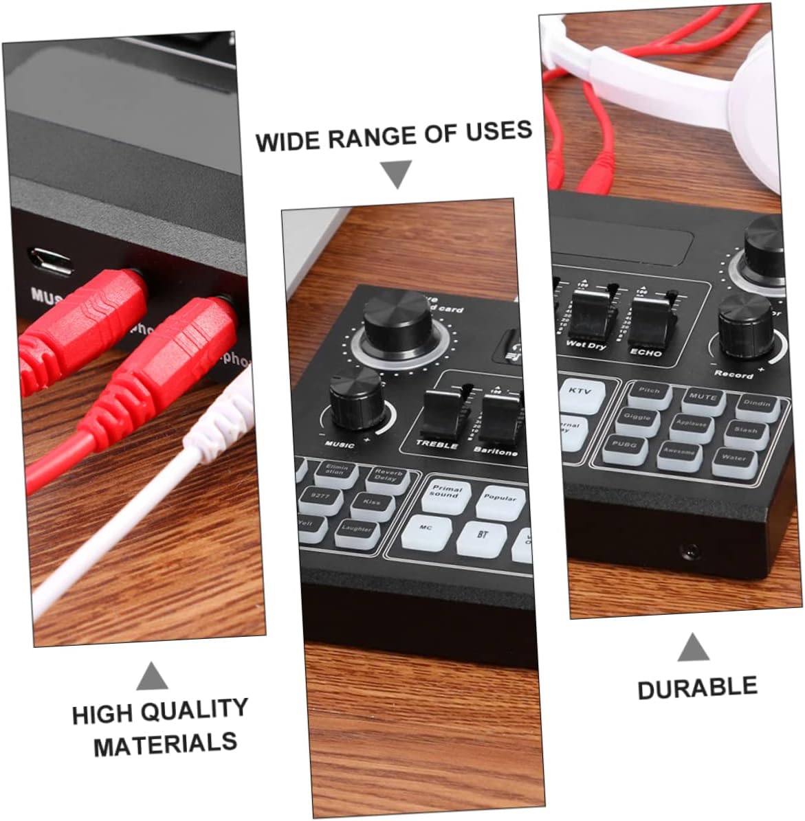 Package List 1 x data cable 2 x connection cables 1 x sound Features -Color: Black Computer Sound Card -Size: 21.20X11.50X3.80cm/8.33X4.52X1.49in Mobile Phone Sound Card -Material: ABS Sound Changer - Simple operation, even beginner it quickly Sound for Live Streaming. - 12 order arbitrary adjustable, 4 effect and 12 special effects, easy to use Audio Mixer. - to or originalsound Live Sound Card. - Smooth and polished outer shell,comfortable to . - Professional pickup, low consumption andbetter stereo effect Voice Disguiser.Goods InformationComputer Sound Card This is a live recording sound card.Portable Voice Changer It ismade of ABS material, durable to use.External Sound Card to or original sound, 12 of arbitrary, 4 of effectand 12 of special effects adjustable, more fun in recording or livestreaming