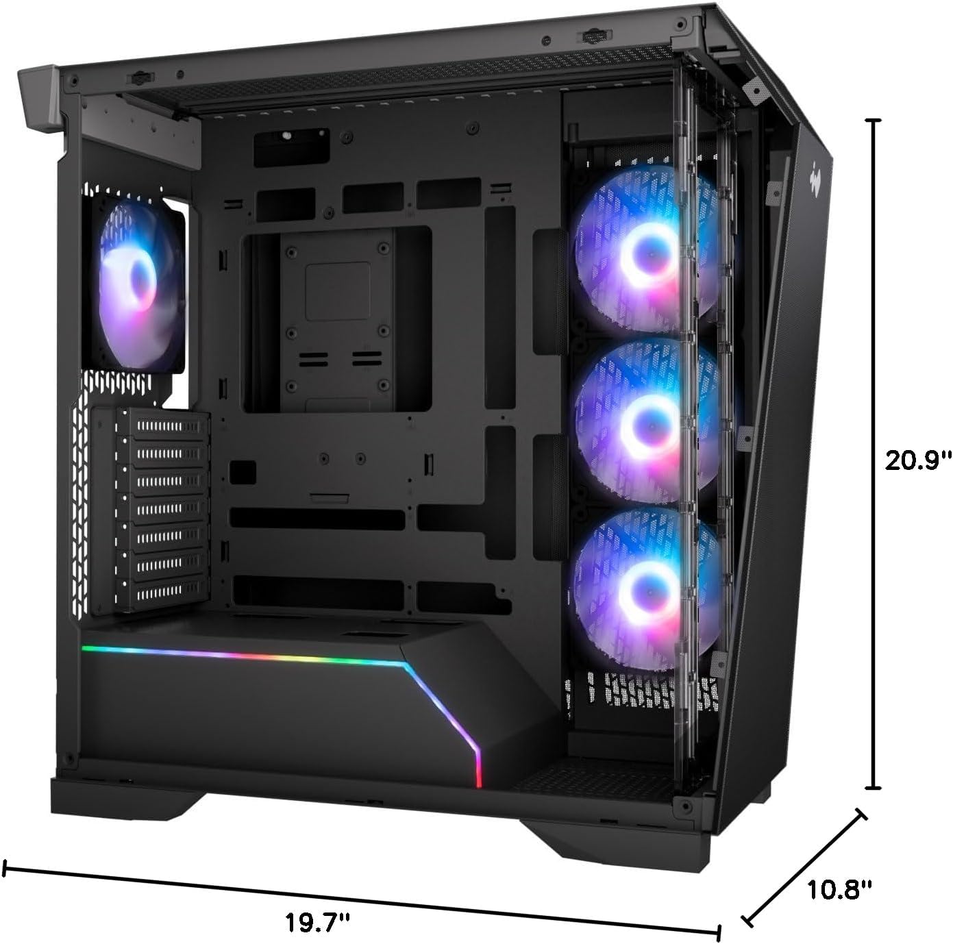 | Compatible Devices | ATX, Mini-ITX motherboards, GPUs up to 435mm, ATX power supplies, 11 fans, 240/280/360 mm radiators |