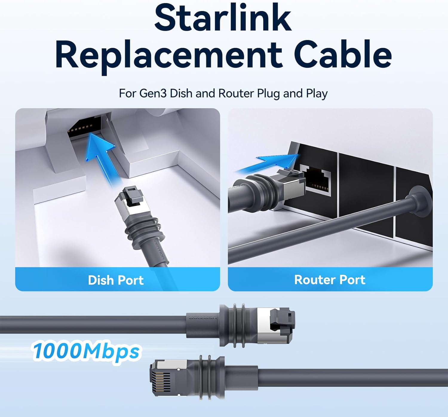 VENTION Starlink Gen 3 Complete Extension Kit: 75ft High-Speed Waterproof Ethernet Cable & IP68 Cable Coupler for Starlink V3/Mini
