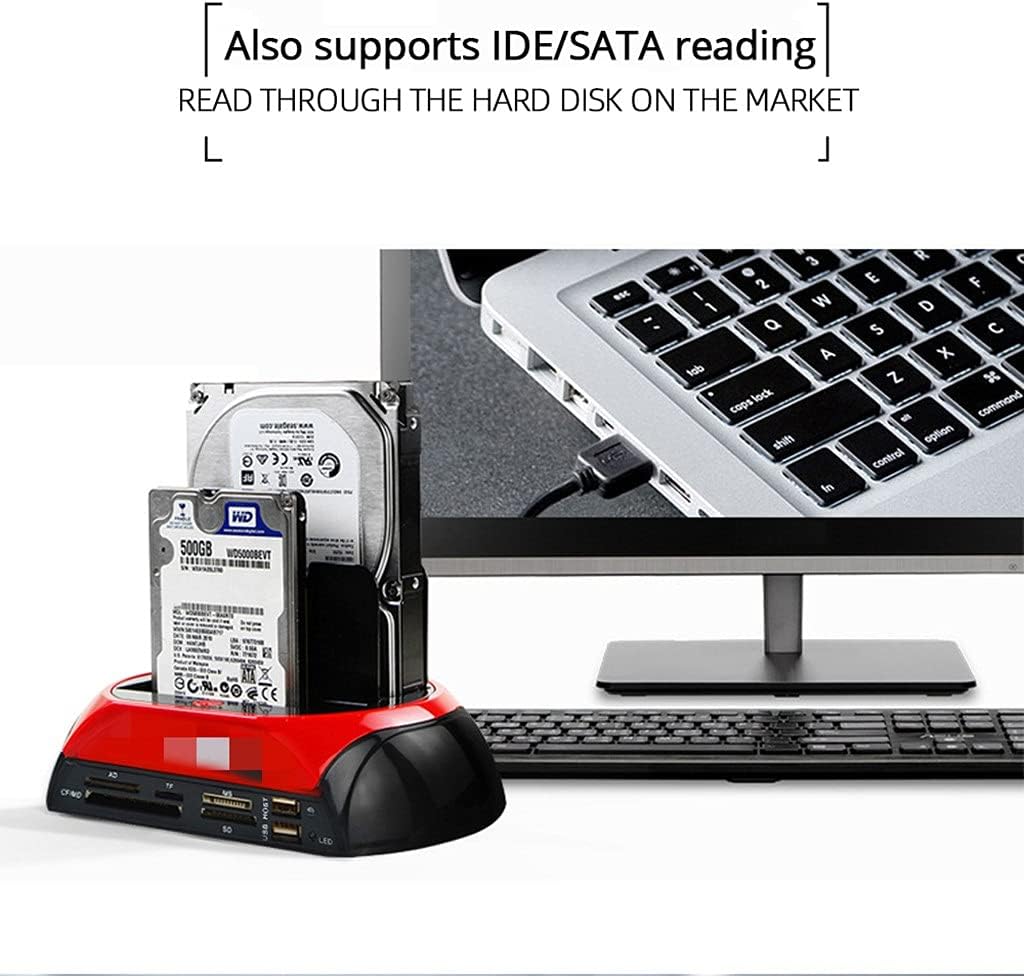 Easy plug and install, insert and remove HDD without tools. Compact size and save desktop space. Featured with Touch Backup function. Much safer and convenient. compatible with 7 /Vista /XP /2000 /98 /95 /for SE/3.x /NT /ME. Easily transfer data from your 2.5"/3.5" IDE or SATA hard drive to your computer through USB 2.0 port up to 480Mbps. Built-in over current,over voltage, short circuit, electric leakage and clutter protection to ensure more secure data transmission. Specification: Model Number: 875D Material: ABS Operating System: 7 /Vista /XP /2000 /98 /95 /for SE/3.x /NT /ME HDD Compatible: All 2.5 Inch or 3.5 Inch IDE/SATA HDD Power Input: 100-240V, 50/60Hz, 1.5A Output Interface: USB 2.0/3.0 OTB Item size: 17.9 * 10.9 * 9.9cm / 7.05 * 4.29 * 3.9in(L * W * H) Item weight: Approx. 232g / 8.18oz Package size: 18.5 * 11.6 * 10.6cm / 7.28 * 4.57 * 4.17in(L * W * H) Package weight: 450g / 15.87oz Support card reader slot:CF/MS/SD/X-Memory/TF Package list: 1x HDD Docking Station Note:This product has only a hard drive slot, no memory card slot Please visit the following URL to download user's guide and driver installation file, http://www.motbsid.com/.