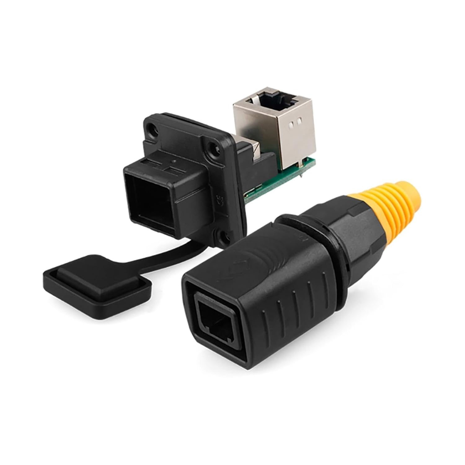 Electrical ConnectorWaterproof PBT RJ45 Connector 8P8C Ethernet Cable Head Gold-plated Panel Socket Network RJ45 Crimper ConnectorFeatures:Waterproof DesignThe Waterproof BT RJ45 Connector features a robust waterproof design, ensuring reliable performance in various environments.Cat3 StandardCompliant with Cat3 standards, this connector guarantees high-speed data transfer rates for efficient networking.RJ45 Crimper ConnectorThe RJ45 crimper connector ensures easy installation and termination, making it a convenient choice for network setup.Gold-plated Panel SocketEquipped with a gold-plated panel socket, this connector offers superior conductivity and corrosion resistance for long-lasting use.8P8C Ethernet Cable Head This connector supports 8P8C Ethernet cable head , providing a secure and stable connection for data transmission.==========Hign-concerned Chemical : NoneModel Number : YT-RJ45Pins : 8 PinColor : BlackApproved : UL & TUVCurrent rating : 1.2ACable specification : 0.15mm²-0.2mm²Protection Level : IP65Durability(Min.) : 500 timesFlammability rating : UL94-V0Housing&insulation parts : High-performance engineering plasticsConnecting mode : Easy locking typeWire Gauge : 26-24AWGCable Range : 5.5~7mmType : RJ45 ConnectorApplication : Audio,Video