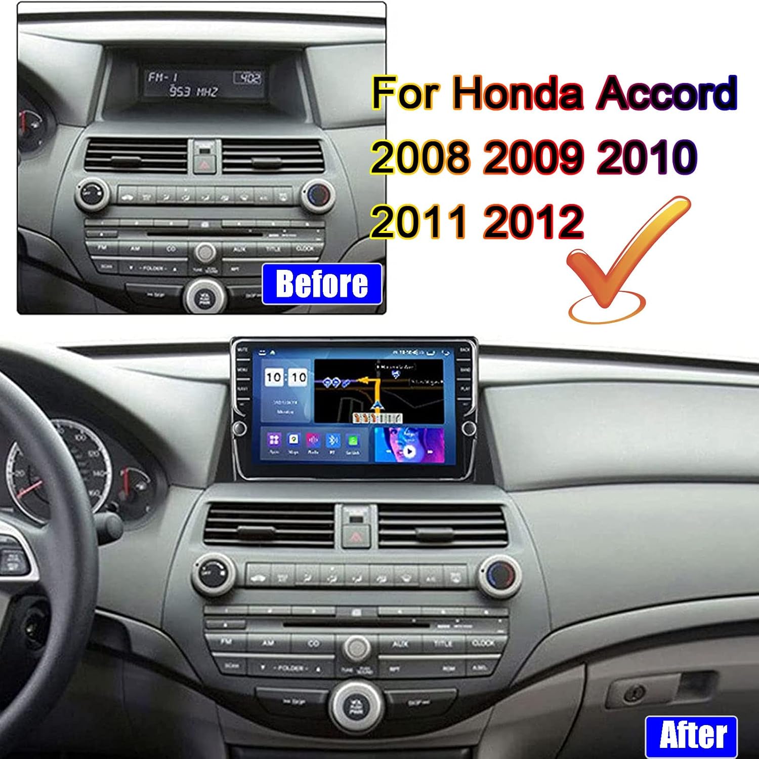 Compatible for Honda Accord 2008 2009 2010 2011 2012 This car stereo radio Head unit 2 DINMP5 multimedia video player ①WIFI 1+16G: 4 Core, HD Screen ②WIFI+4G 2+32G: 8 core, IPS Screen, Carplay,Cooling fan,DSP, RDS ③WIFI+4G 6+128G: 8 core, IPS Screen, Carplay,Cooling fan,DSP, RDS ◆The plugs of all cables and the frame can be completely matched with the original car without changing or damaging the original car wire. ◆With 2 USB inputs ports, and can be directly interface with the camera, DVR ◆Support Carplay, steering wheel control (need to learn the steering wheel) ◆Extended Functions: DVB-T/DVB-T2/ATSC/ISDB-T(external),TPMS,DVR,TMC,OBD,DAB etc ◆Support Language: English/ French/ German/ Italian/ Spanish/ Japanese etc more than 80 languages Navigation includes: 1 × The frame 1 × Head unit (screen) 1 × Power Harness(Plug and Play) 【Note】: ①Please confirm it before purchase. If you are not sure, please contact us and send us your car central control map ②Our radio supports customization, You can send us your requirements,Customize for your car ③If you have any questions, please contact us as soon as possible. We will provide you with support services including installation