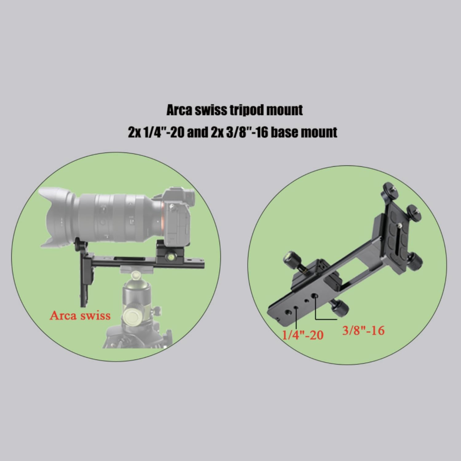 Features: Quick-release plate for camera Arca swiss mount,1/4"-20,3/8"-16 to tripod Slidable plates Spirit levels for leveling Lens support height adjustable Material: Aluminum Alloy Maximum Load Capacity: 6 - 10kg / 13.2 - 22Lbs Screw Type: 1/4"-20 Bottom Thread Type: 1/4"-20 ,3/8"-16,and arca swiss mount Wheel Center Distance: 48mm / 1.89" Wheel Diameter: 27mm / 1.1" Item Weight: 366g / 12.9oz Package Size: 22.7 * 11.5 * 6.4cm / 8.9 * 4.5 * 2.5" Package Weight: 443g / 21.9oz Package List: 1 * L200 telephoto lens holder 1 * 1/4 screw 1 * Quick Release Plate Note: Tripod and Camera are not included!