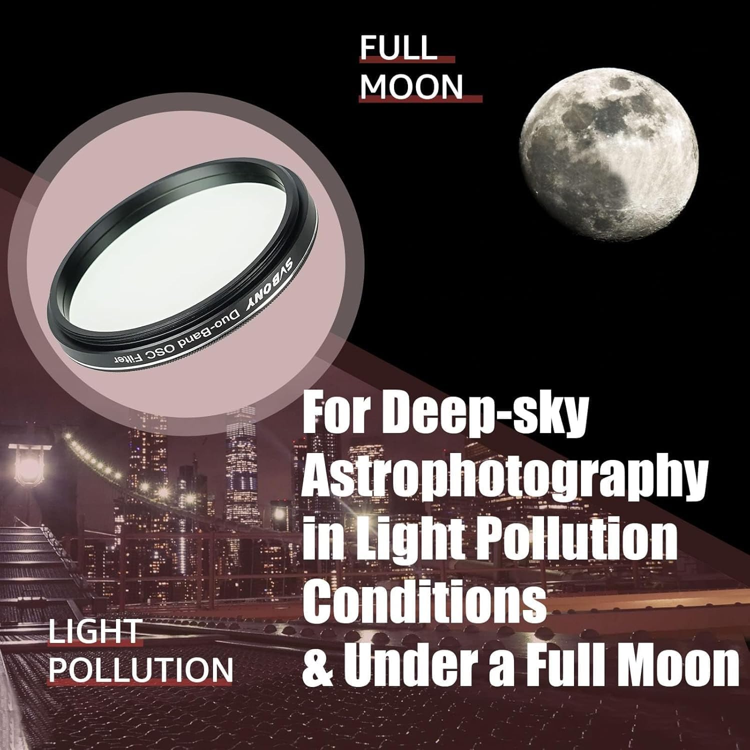 The SV220 dual-band filter is designed for astrophotography of emission nebulae, planetary nebulae and supernova remnants. The high transmission and sharp cut-off greatly enhances the contrast of image and brings out the most detailed information of those deep-sky objects.SV503 70mm telescope is ideal for observing galaxies, nebulae and star clusters, delivering crisp and bright images. It with built-in field flattener and Extra-Low Dispersion Glass, which can virtually eliminate the field curvature and chromatic aberration,providing true colors.