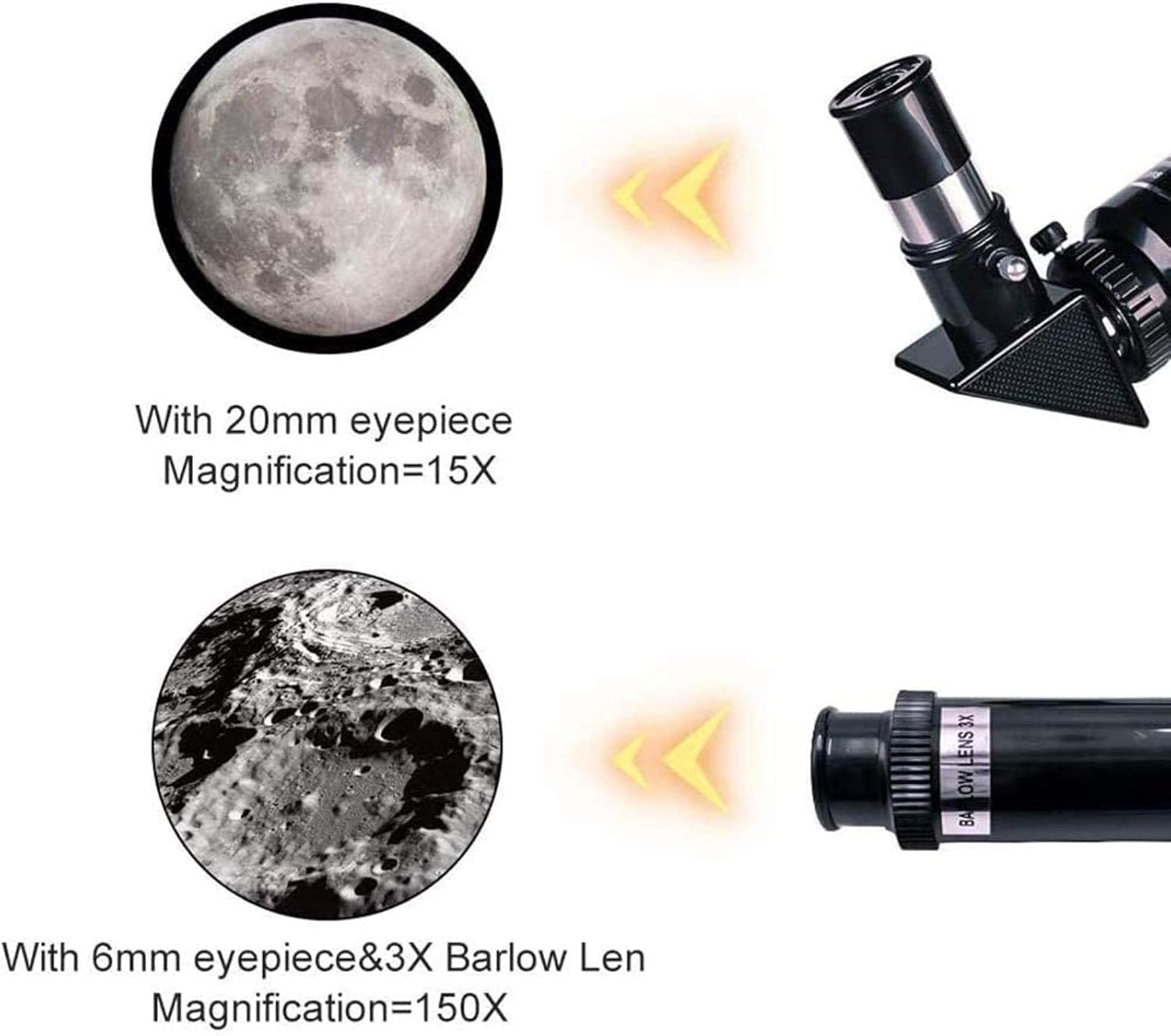 1. The refractor has a strong focal length, a large field of view, and a strong resolution.Multilayer optical coating,Refractive optical system,high light transmittance, and enhanced image brightness and clarity.Aluminum tripod 2. It is very suitable for astrometric work, and it performs well in observing the moon, planets, and binary stars. Easy to observe the ground view, very suitable for enlarged photography of the moon and planets 3. The telescope is suitable for beginners or children. It is easy to install and observe for beginners. It will encourage children to like learning space, get close to nature and stay away from electronic products. And provide a wonderful holiday or birthday gift idea for children who like science and astronomy. 4. If you have any questions about quality after receiving this space telescope, please contact us for the first time. We provide a high standard of 24/7 customer service, and will do our best to solve it for .