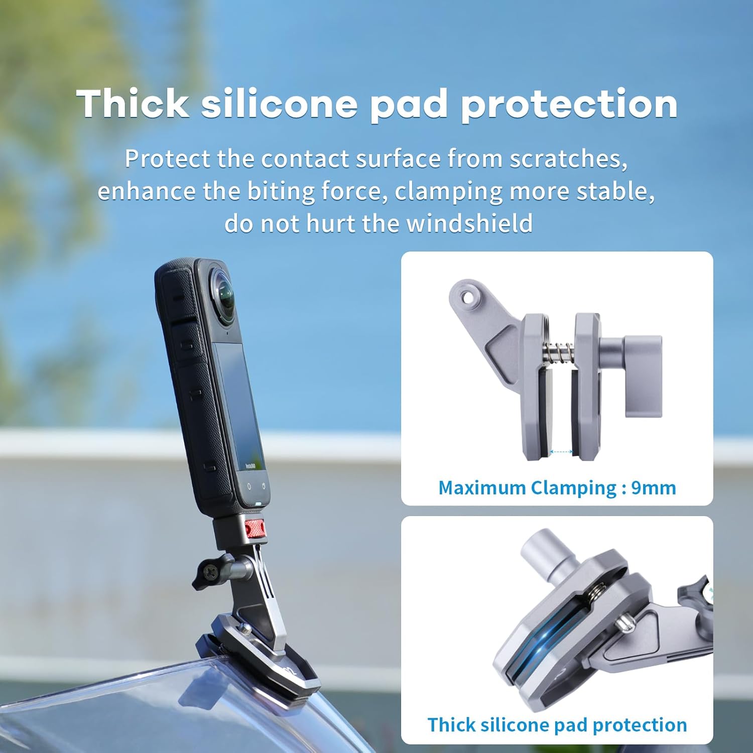 | BuiltIn Media | SEASKY M02 All Aluminum motorcycle Windscreen Clamp Mount x1 SEASKY 1/4-20 360 Camera Metal Adapter x1 |