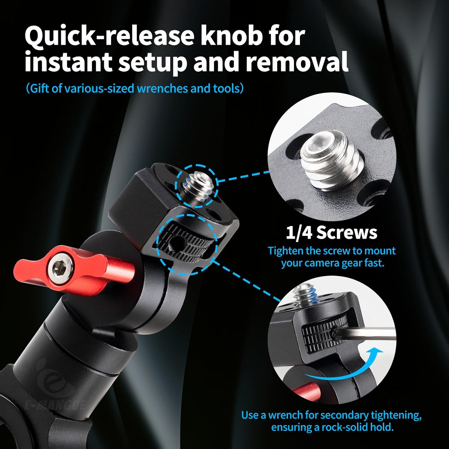| BuiltIn Media | 1/4" Screws, Sports Camera Adapter, Titanium rods, Wrench tool |