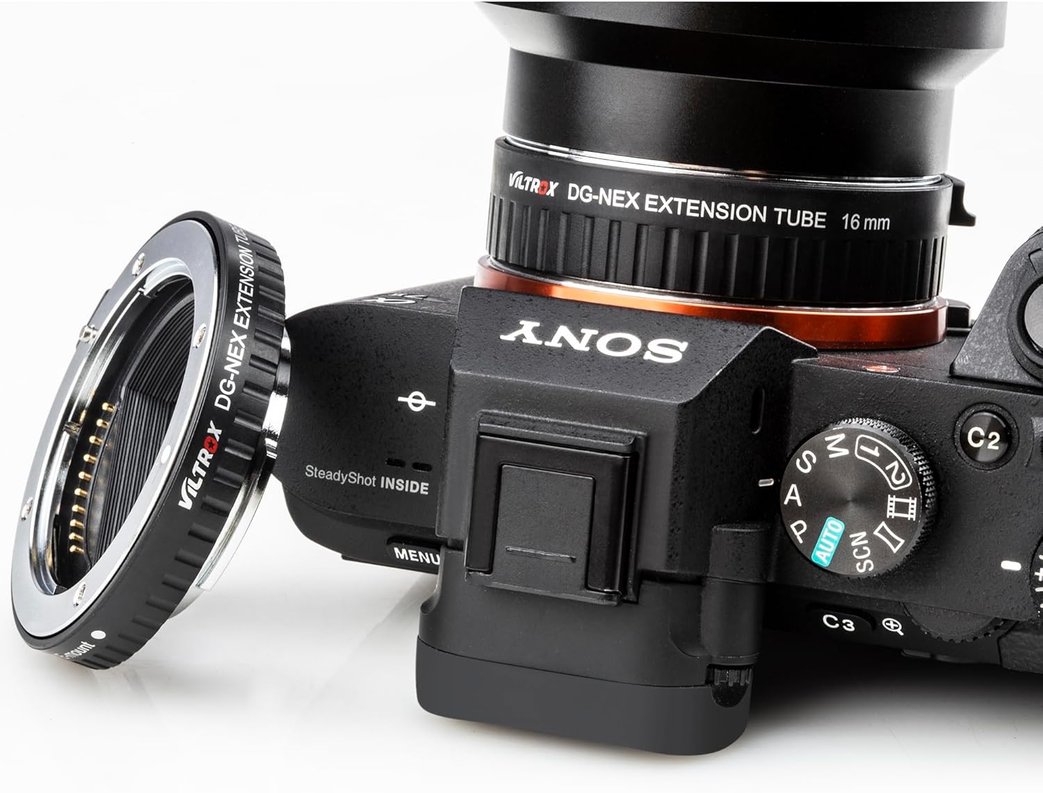 Compatible with Sony NEX, E-mount series Micro DSLR. Aperture hole design, perfectly support Sony full-frame camera A7/A7R/A7S/A7 II Includes 2 extension tubes: 10mm, 16mm, totally 3 combinations It enable you to transform your digital camera lens into a macro lens with this Macro Extension Tube Set for Sony NEX (support auto focus) Get get the CE, EMC, FCC, RoHS certification , the quality is assured. it comes with 60-Days return-back guarantee when you received the item but you do not satisfied with our item.