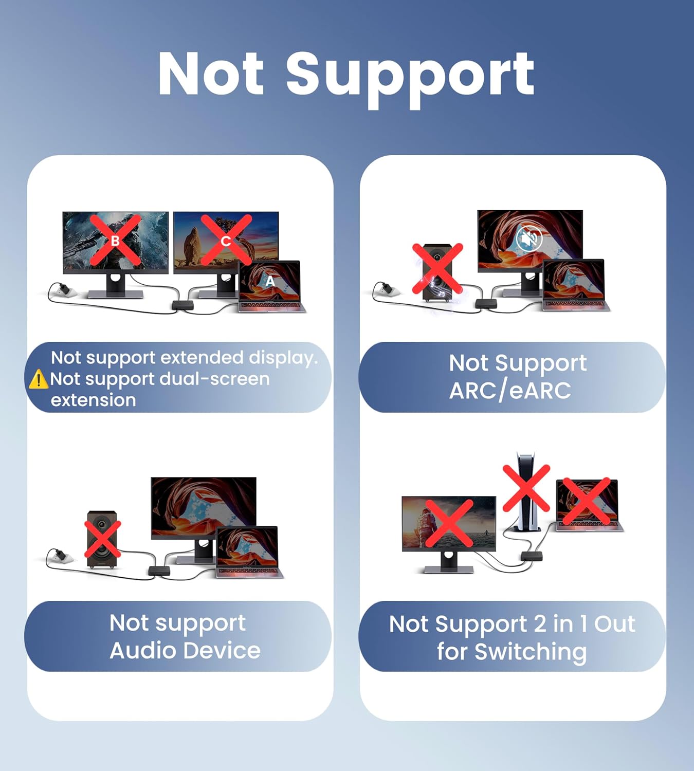 HDMI 2.0 b Splitter 1 in 2 Out - Mirror Only(Not Extend): avedio links HDMI 1 in 2 out Splitter 4K@60Hz can duplicate 1 HDMI input video signal to 2 HDMI display (TV, monitor, projector etc), mirror video and audio simultaneously without any loss Not Support: 1.Not