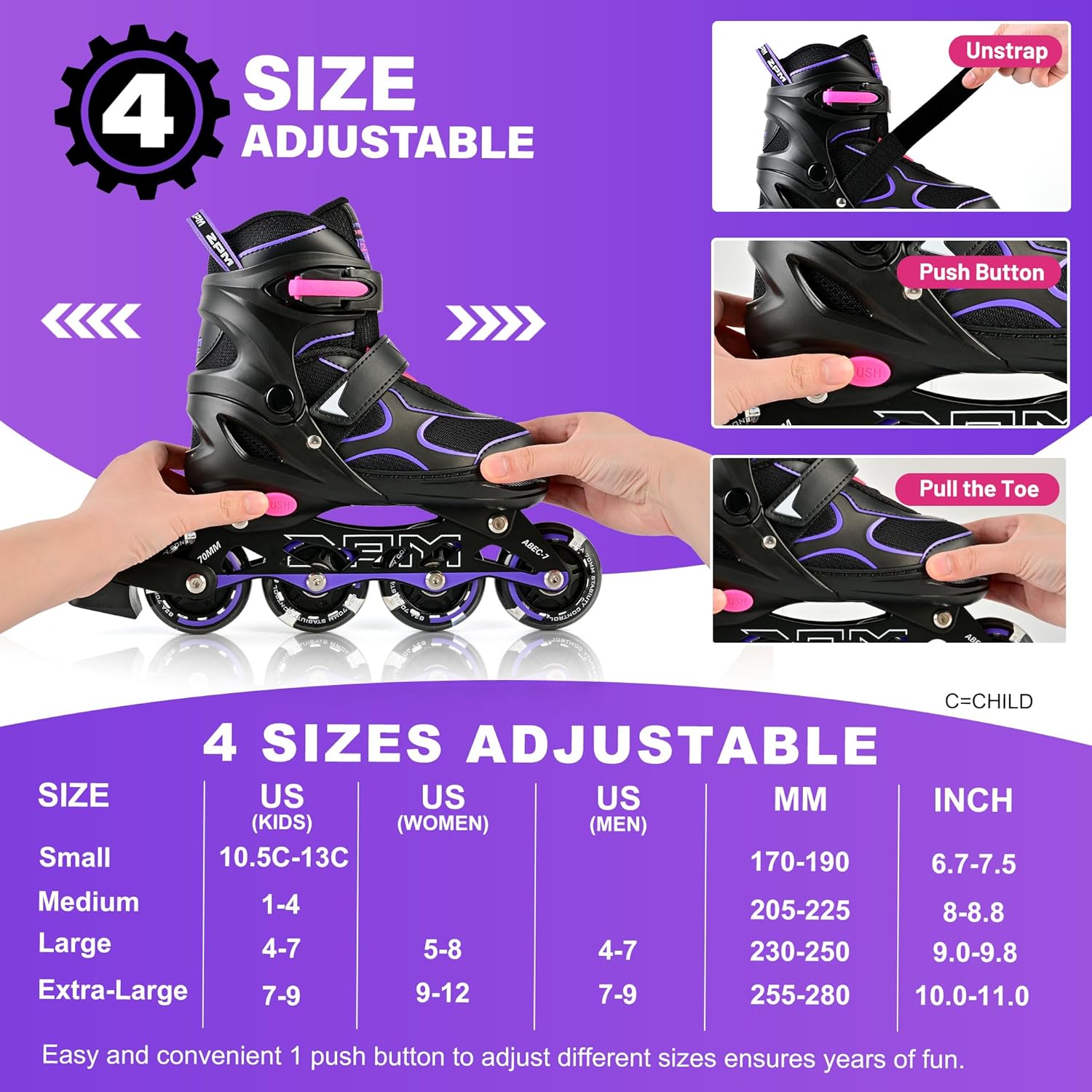 Are you looking for skates that are safe for starting out, enjoyable enough to keep using, and can grow alongside your child? Our product is built precisely for families like yours. We focus directly on your core needs: Real Hassle and Money Savings. The unique expandable design allows one pair to fit for multiple years, eliminating the trouble and cost of frequent replacements. Tangible and Reliable Safety comes from the wide, easy-to-use heel brake and enhanced ankle support structure, significantly reducing beginner risks and giving you greater peace of mind. Instant On-and-Play Enjoyment is ensured by the easy-entry, wide-opening boot and soft liner, so your child won't resist due to discomfort. The auto light-up wheels continuously fuel their excitement and add safety during evening play. Every step, from unboxing to gliding, is thoughtfully designed for you and your child. It's more than a toy; it's a worthwhile investment in their development, helping to build balance, coordination, and a passion for the outdoors.