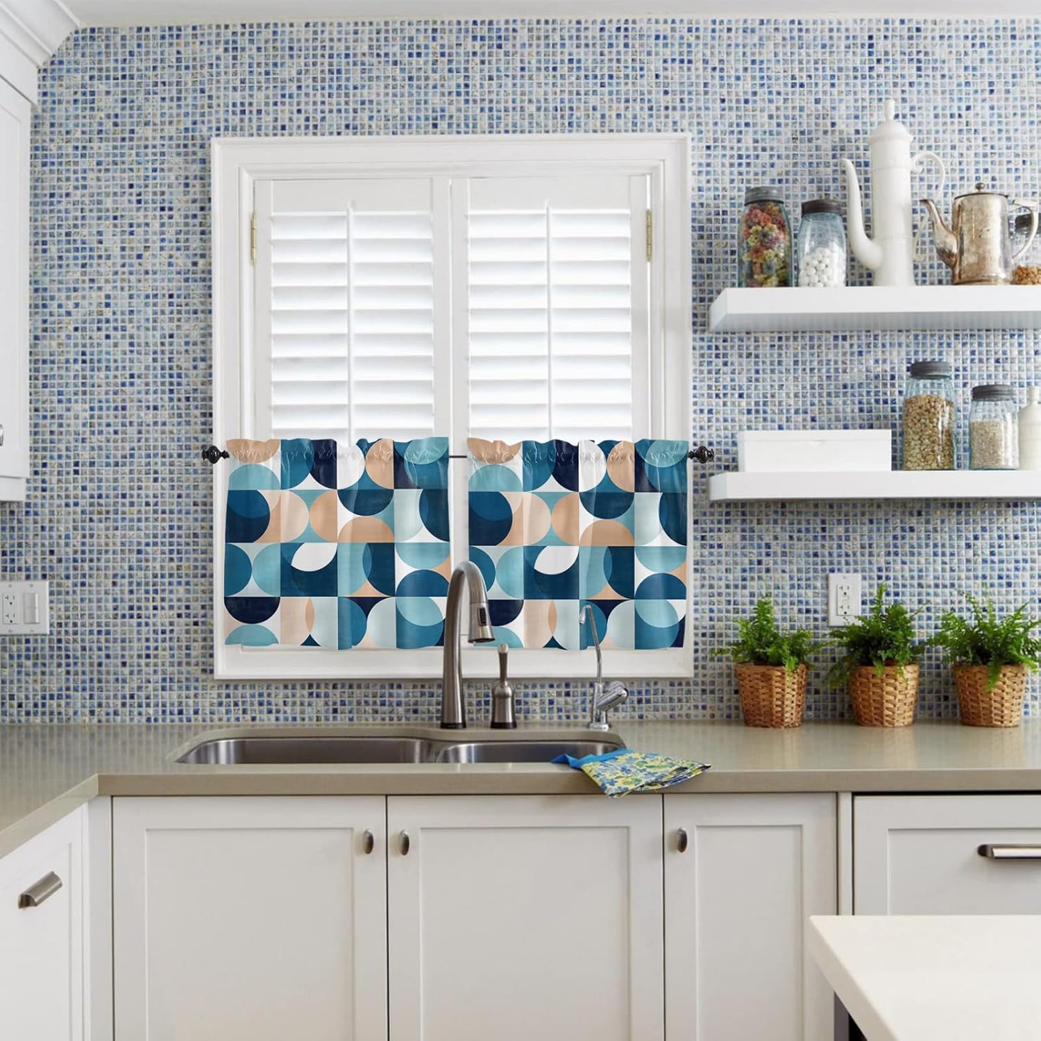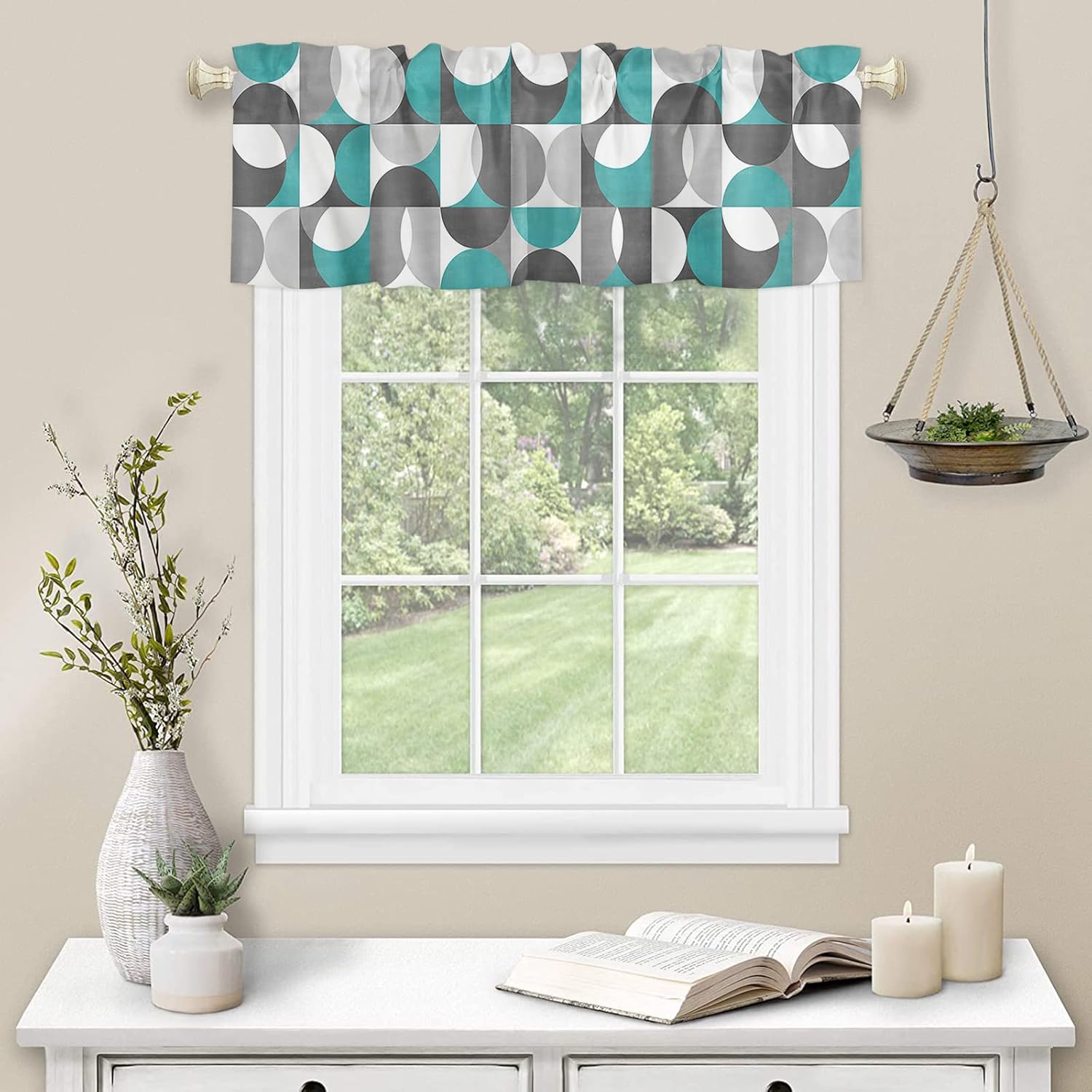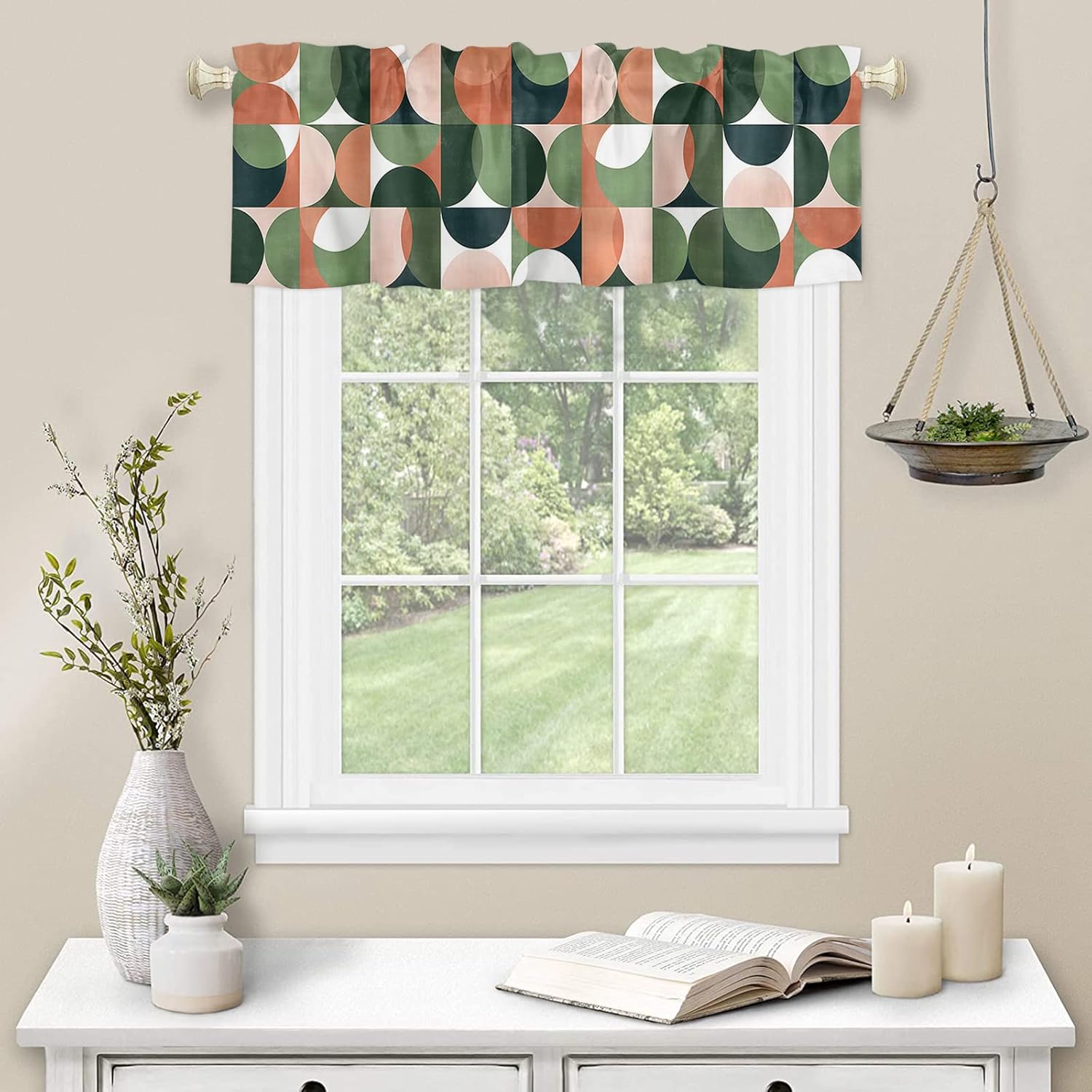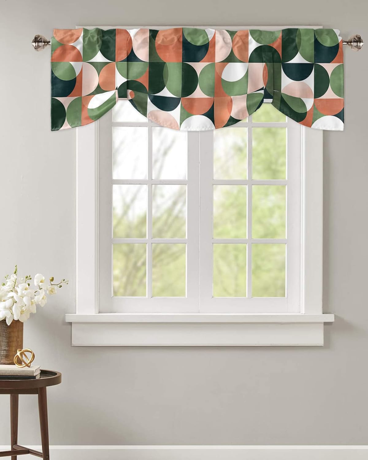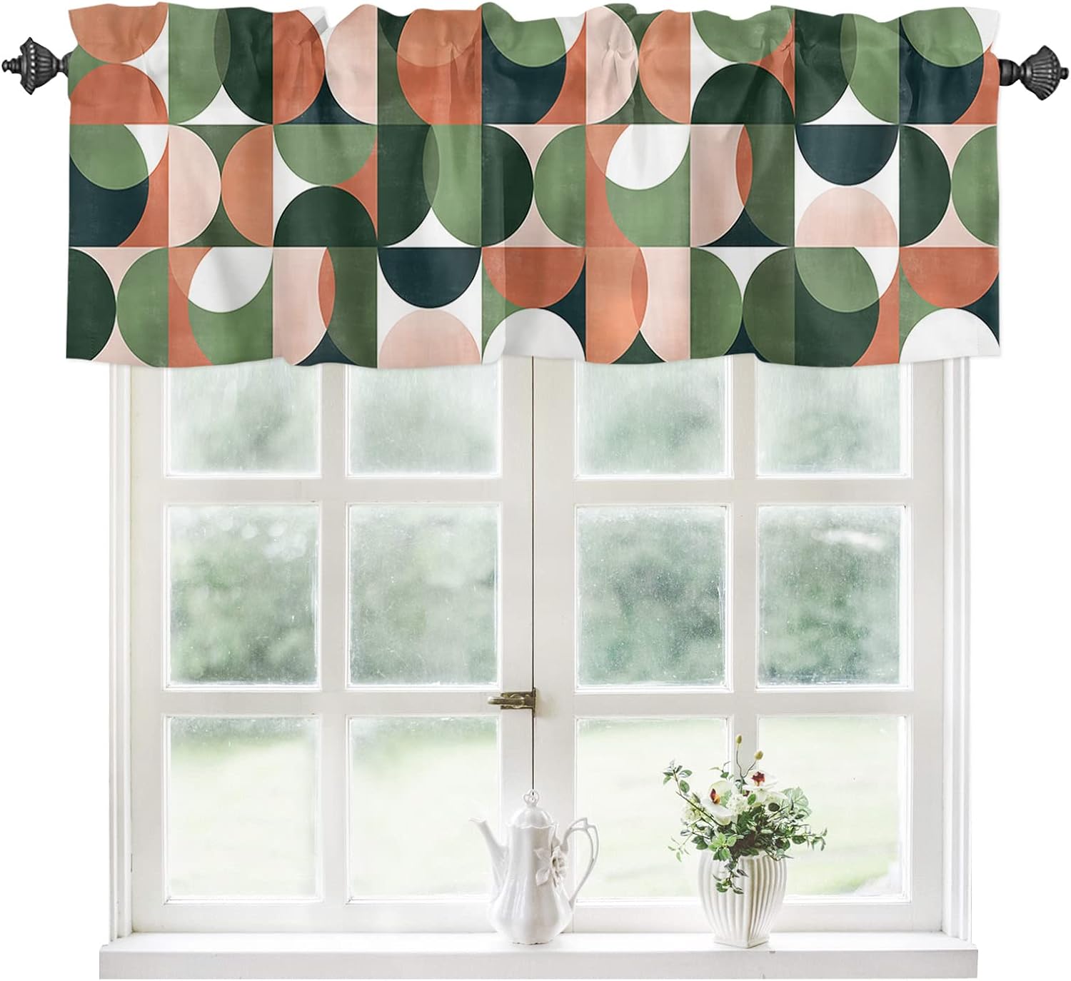Kitchen Valance and Tiers Premium Fabric - The valance set is made of 100% high quality polyester, which is eco-friendly and skin- friendly. Light Filtering - Window Tier Curtains and Valance Set will filter out some of the light and heat from entering your room. Smartly allowing enough natural light into, while still providing enough privacy. Festival Print - This exquisite curtains printed with stylish pattern and bright color, enhances the style and festival atmosphere of interior space. Also a great holiday gifts for your family and loved. Rod Pocket Design - Constructed with 3"" rod pocket and 1"" header, fit well with standard or decorative curtain rods, which makes the curtains easy to install and slides. Home Decor - It easily match with many home decor styles. Whether farmhouse/farm, country/rustic, modern, retro, French or Nordic style, these stylish window curtains can complement it. Multi-scene Use You can use it everywhere you want, such as kitchen, basement, bathroom, bedroom, living room, nursery, Infant room and so on. Useful - Protect your furniture from fading and cracking caused by long-term exposure to ultraviolet rays. Care Instructions - It is easy to wash by machine in cold water, gently cycle. Do not bleach. You will get 3 panels in each package, include 1pcs short valance and 2 pcs curtain tiers Standard Size - Valances: 54" x 18" - Tiers: 27.5"x24"x 2 Panel or 27.5"x36"x 2 Panel Please make a measure before purchasing.