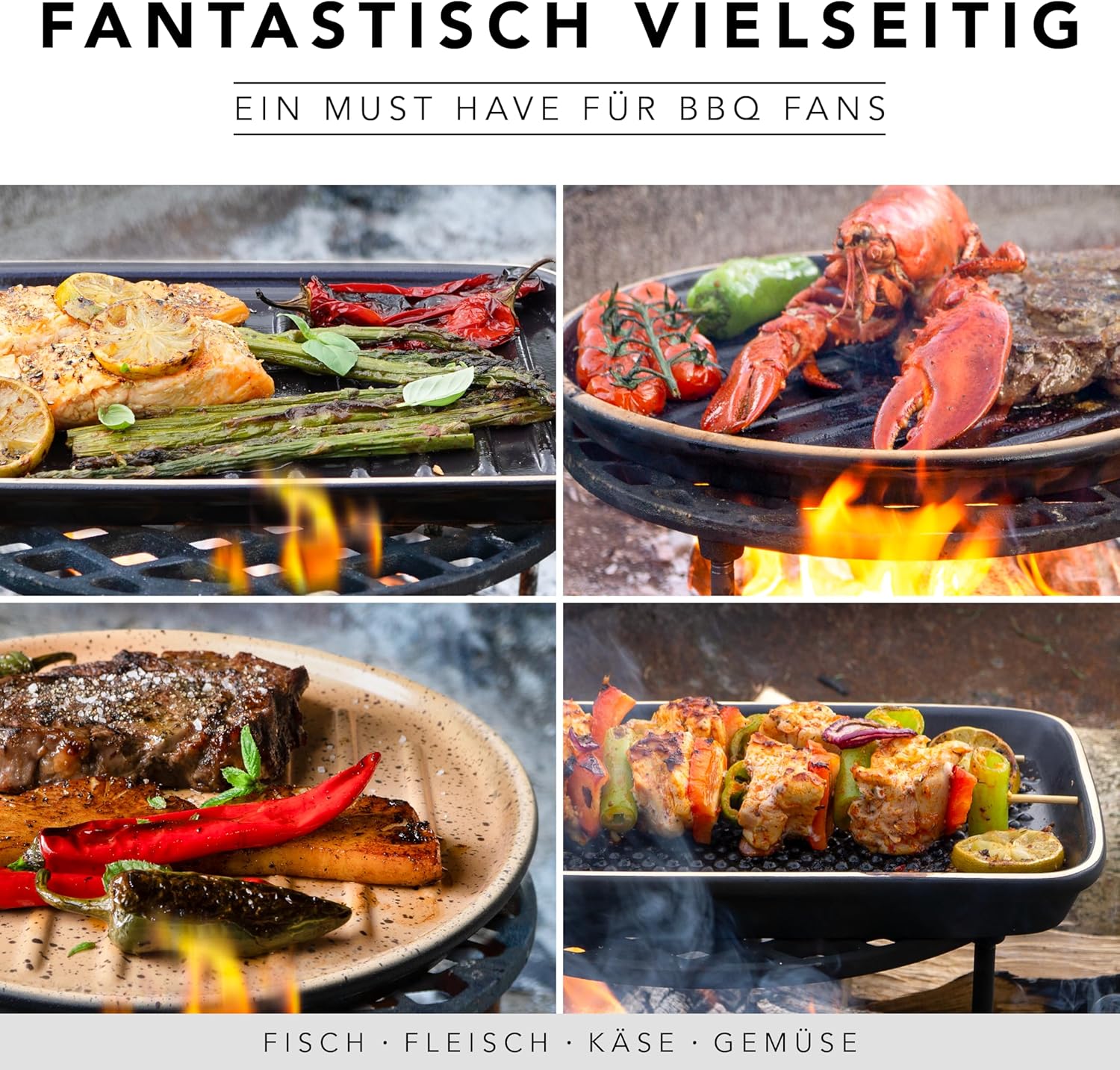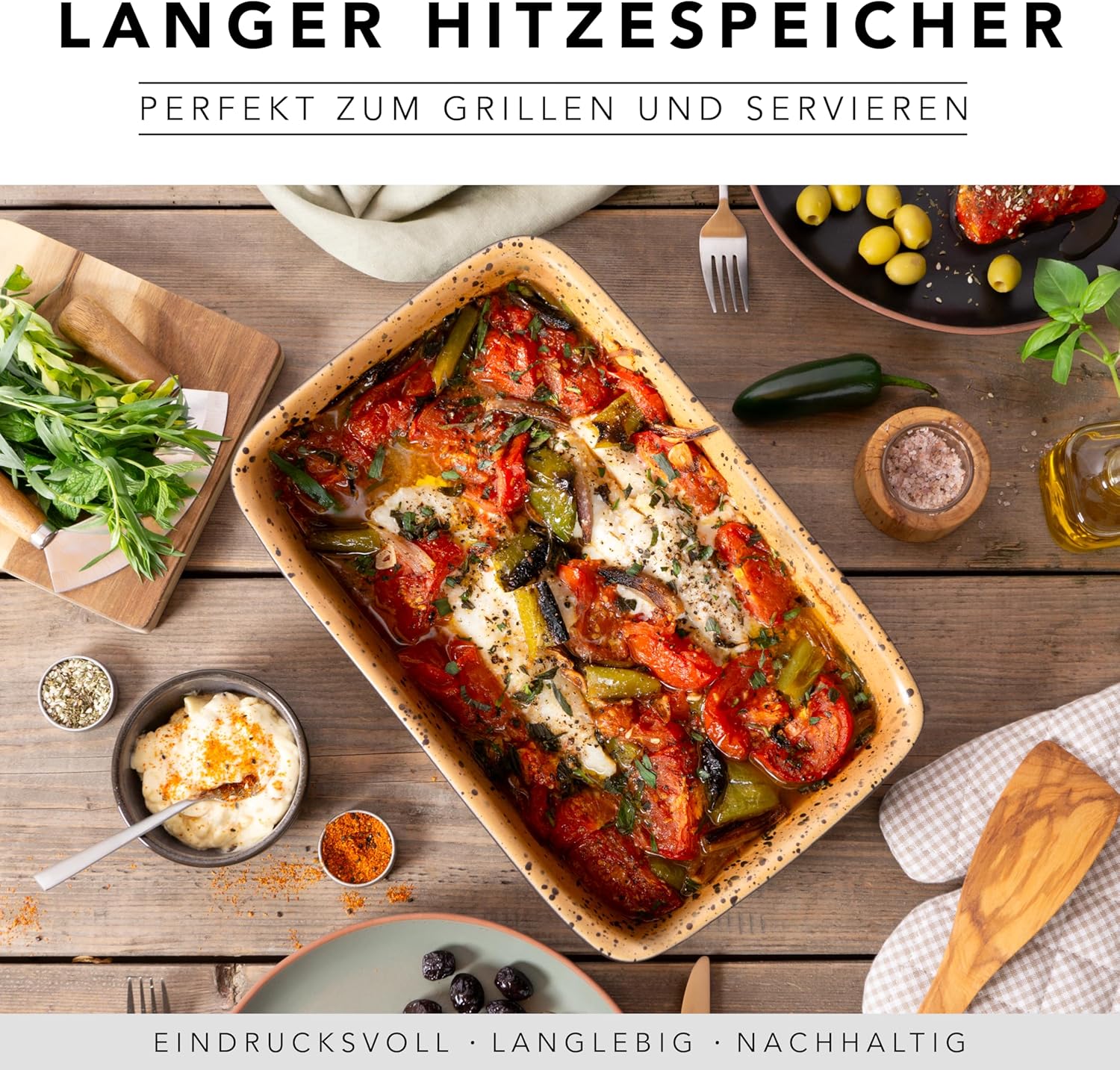 Römertopf Maxi grill tray, ideal for e.g. fried potatoes, vegetables, casseroles, gratins and much more. Universal fit for all standard grills. With extra wide handle for safe handling. Made of fireproof clay, high gloss black exterior, transparent natural glazed interior.