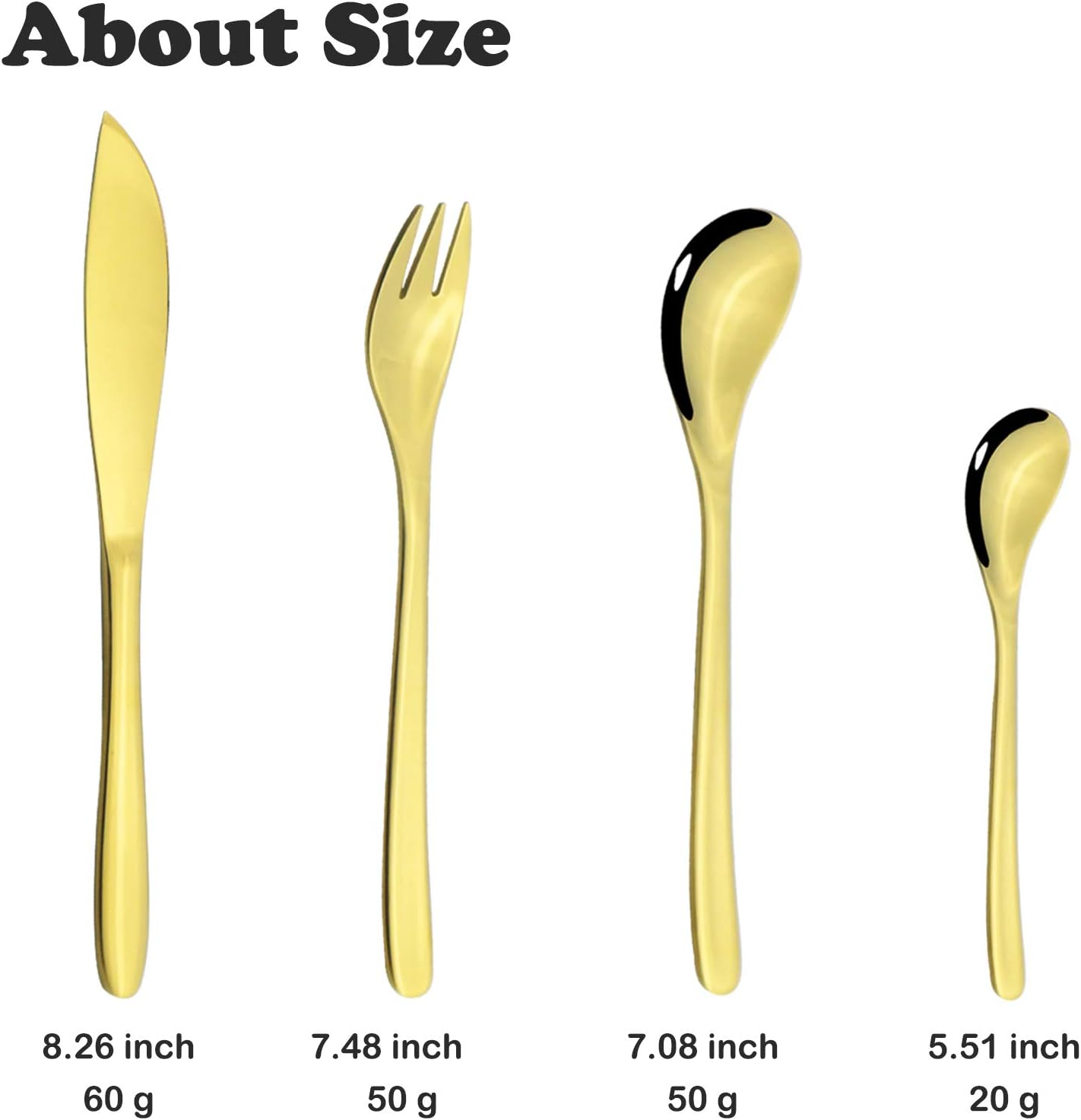 Why choose JASHII Modern Sleek Design Cutlery Set ? Japanese-style Elegant Design: Make your dining table stand out with a silverware set that is eye-catching without being visually overpowering. Especially the shinning finished and elegant design,it always makes the entire dining table luxurious and noble. Premium Material: silverware set 24 piece solid made of high quality premium 18/10 stainless steel, also called 304 grade, rust resistance and nickel free, healthy and durable for daily use, easy clean and dishwasher safe. solid construction ensures everyday usage and durability, no worry about bending. Mirror Polished: Produced by finer abrasives, and finishing with extremely fine buffing compounds, the mirror surface is high gloss and has perfect reflective quality to complement fine china and haute cuisine. Smooth and Comfortable Edge: Smooth edge with no other rough impurities that is safety for your lip. About size: Dinner Knives - 8.26 inch - 60g Dinner Forks - 7.48 inch - 50g Dinner Spoons - 7.08 inch - 50g Tea Spoons - 5.51 inch - 20g Cutlery Set Included: 6 x dinner forks, 6x dinner spoons, 6 x dinner knives , 6x teaspoons. 24-Piece Cutlery Set Services for 6 Person Each piece is wrapped in plastic sleeve to prevent from scratches during shipment. A great gift to friends and families. Perfect gift ideas for wedding, birthday, theme parties, home warming,engagement and your regular meals. Great Customer Service: If there are any Issues, our friendly customer service will serve you wholeheartedly within 24 hours.