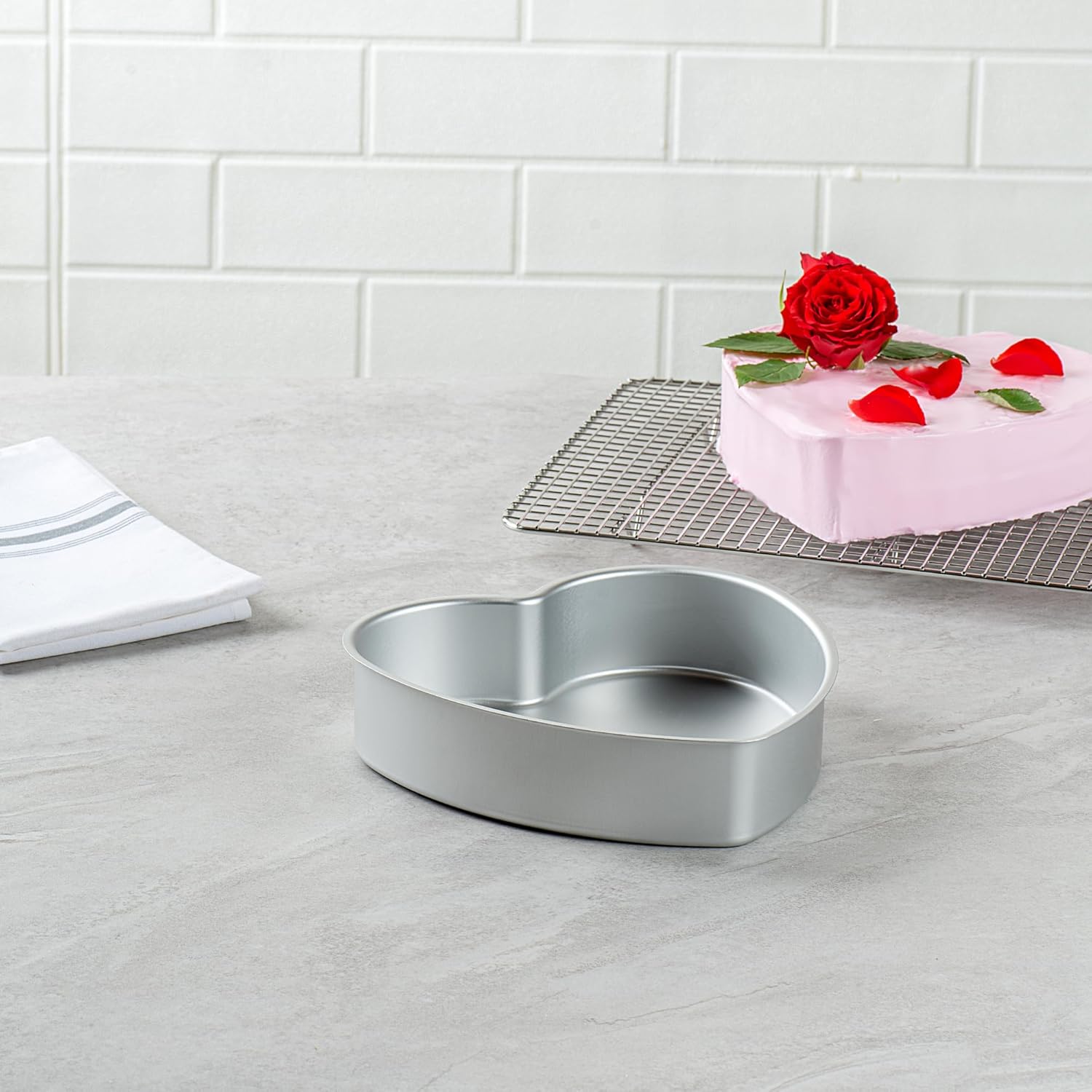 Delight your customers with perfectly shaped desserts using our Met Lux Heart Aluminum Cake Pans. With straight sides, these cake pans effortlessly create symmetrical and smooth-edged cakes, enhancing the presentation of your baked creations. These baking tins are designed to be oven-ready up to 390F, offering versatility and convenience for various baking needs and recipes. With a freezable design, these aluminum baking pans provide added convenience for storing your baked goods, allowing you to prepare ahead of time for any occasion. These cake tins feature a greaseproof surface to effortlessly release your baked goods, simplifying the baking process and ensuring consistent results. Manufactured from anodized aluminum, these heart cake pans offer excellent heat conduction, ensuring even baking and consistent results for your delightful creations. These baking pans are durable and maintain their shape over time, providing long-lasting performance. Measuring 8 inches in length by 8 inches in width by 2 inches in depth, these heart-shaped cake pans are ideal for crafting beautiful heart-shaped cakes or pastries. Sold in a 12 count box.