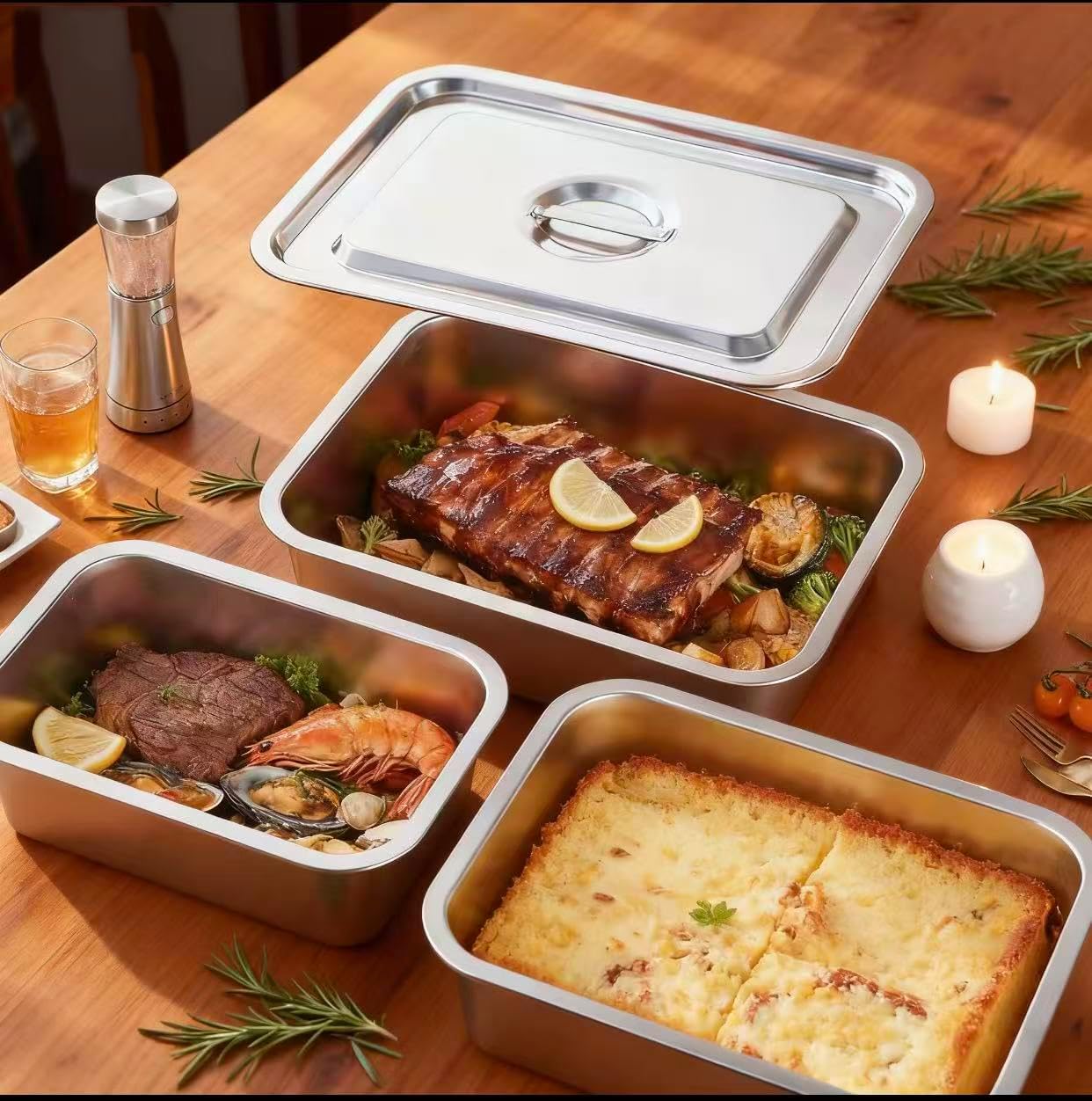 • 【Stainless Steel Lid with Handle】Baking pans for oven are designed with convenience lid, the lid can fit snugly on the pans, making food storage and transport easy, and keeping dust away.