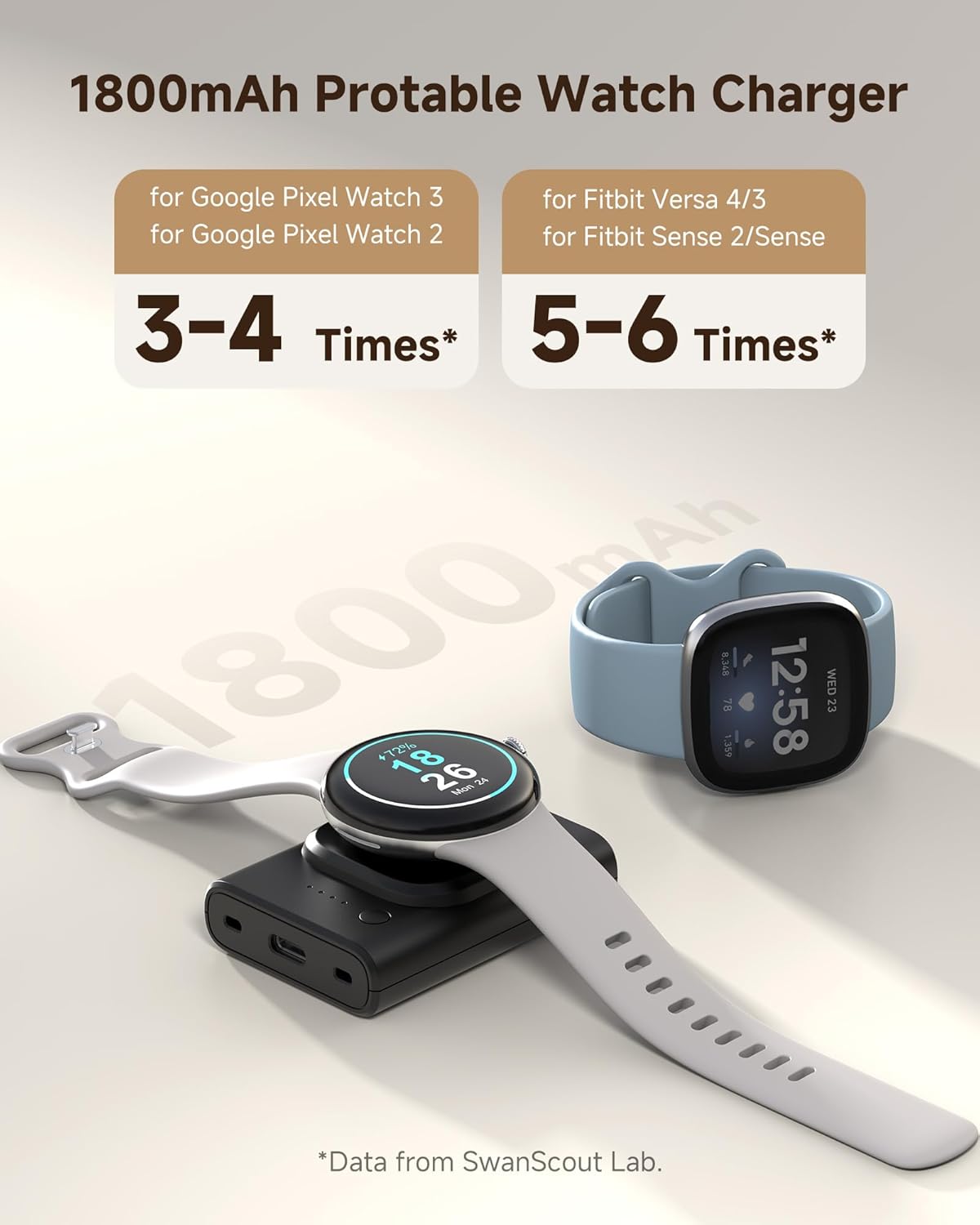 SwanScout Charger Stand for Google Pixel Watch 3/2 (Not for Pixel Watch 1), SwanScout 505G2, Fast Charging for Google Pixel W atch 3/2 (Black), 1800mAh Portable Charger for Google Pixel Watch 3/2