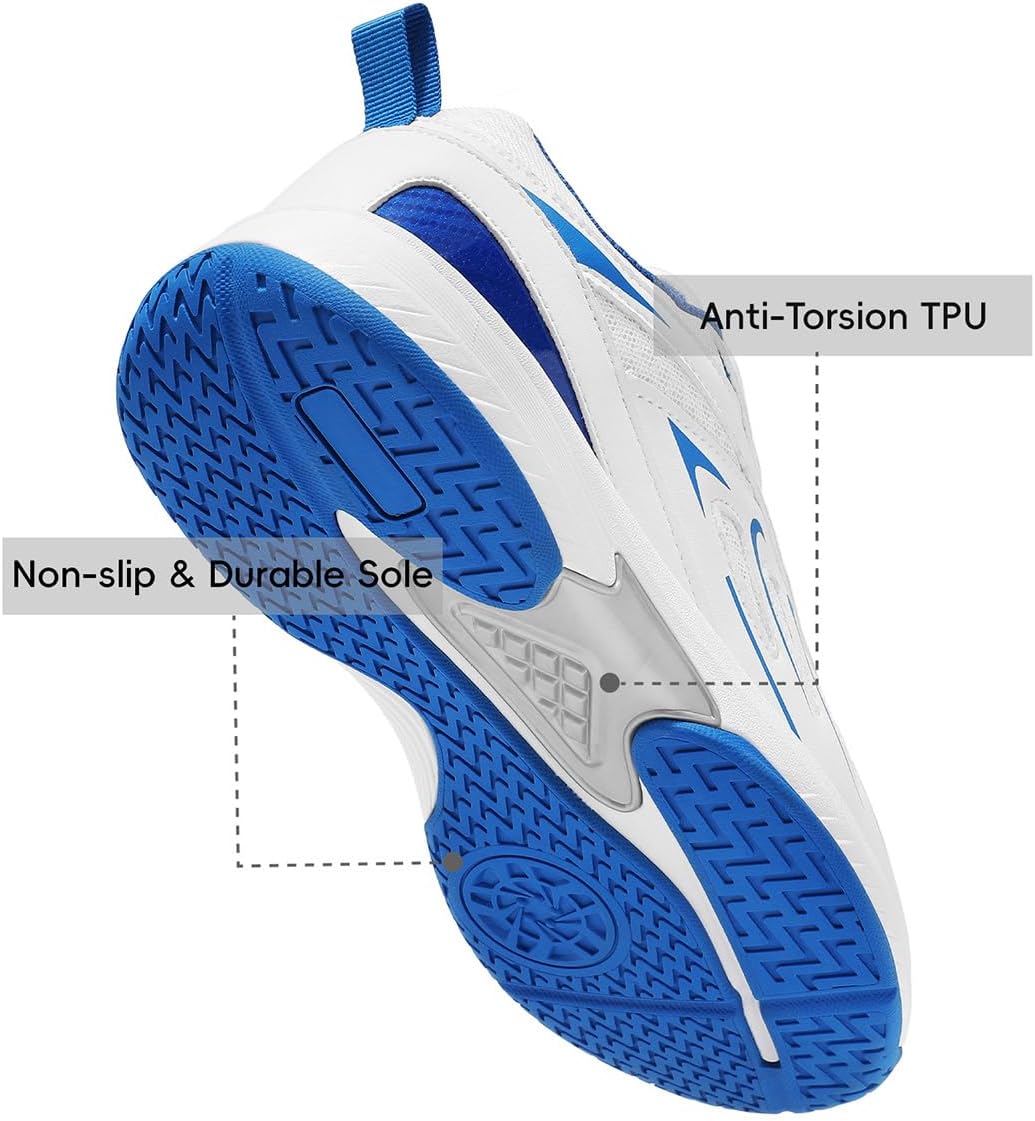 This mens tennis shoe features a breathable mesh design that ensures comfort while keeping feet dry and comfortable at all times—whether during high-intensity competition on hot days or extended daily wear. It serves as both a professional player's court companion and the go-to breathable choice for casual outings, balancing ultimate breathability and moisture-wicking with powerful shock absorption and protection. Every step feels comfortable and energized, delivering professional performance and everyday style! Lightweight construction significantly reduces stuffiness and weight. Responsive rebound delivers swift takeoffs, while landing impacts are cushioned for reduced shock. The wide-foot design ensures comfort during extended workouts or walks, making it suitable for both professional training and everyday versatility. The high-density, wear-resistant rubber outsole features an upgraded herringbone pattern, boosting traction by 50%. It performs flawlessly on hard courts, grass, and synthetic surfaces, delivering slip-free performance in both dry and wet conditions. Its durable construction ensures long-lasting reliability.