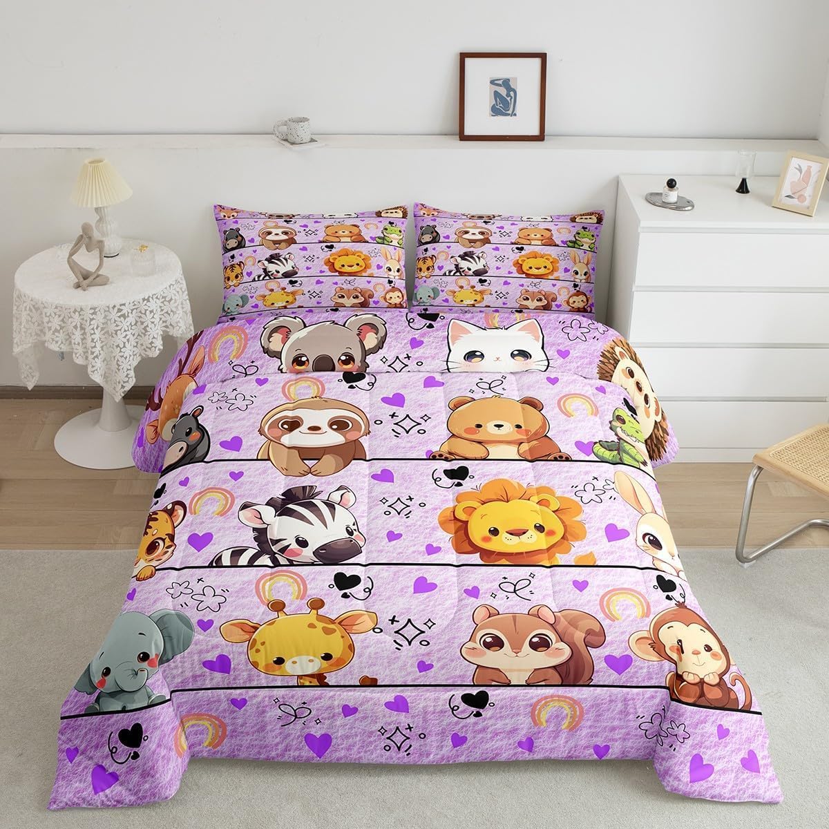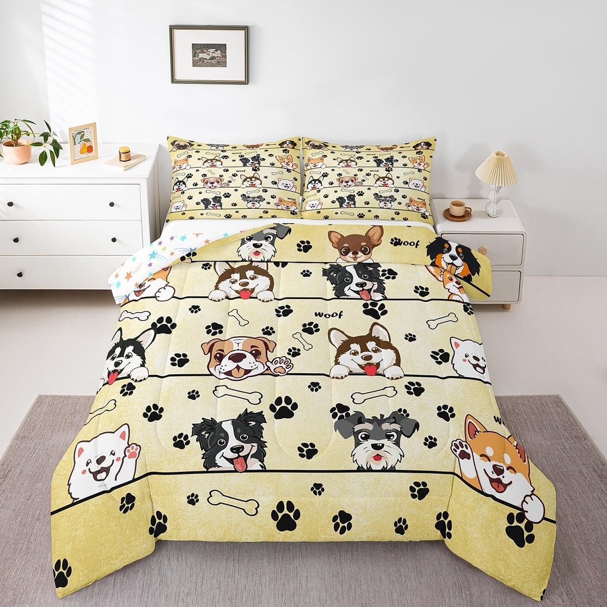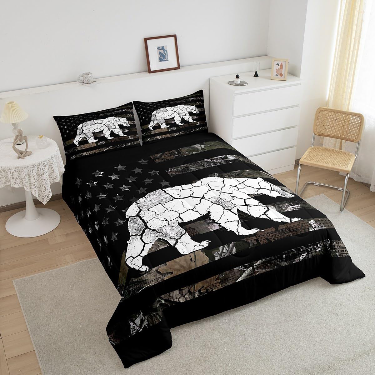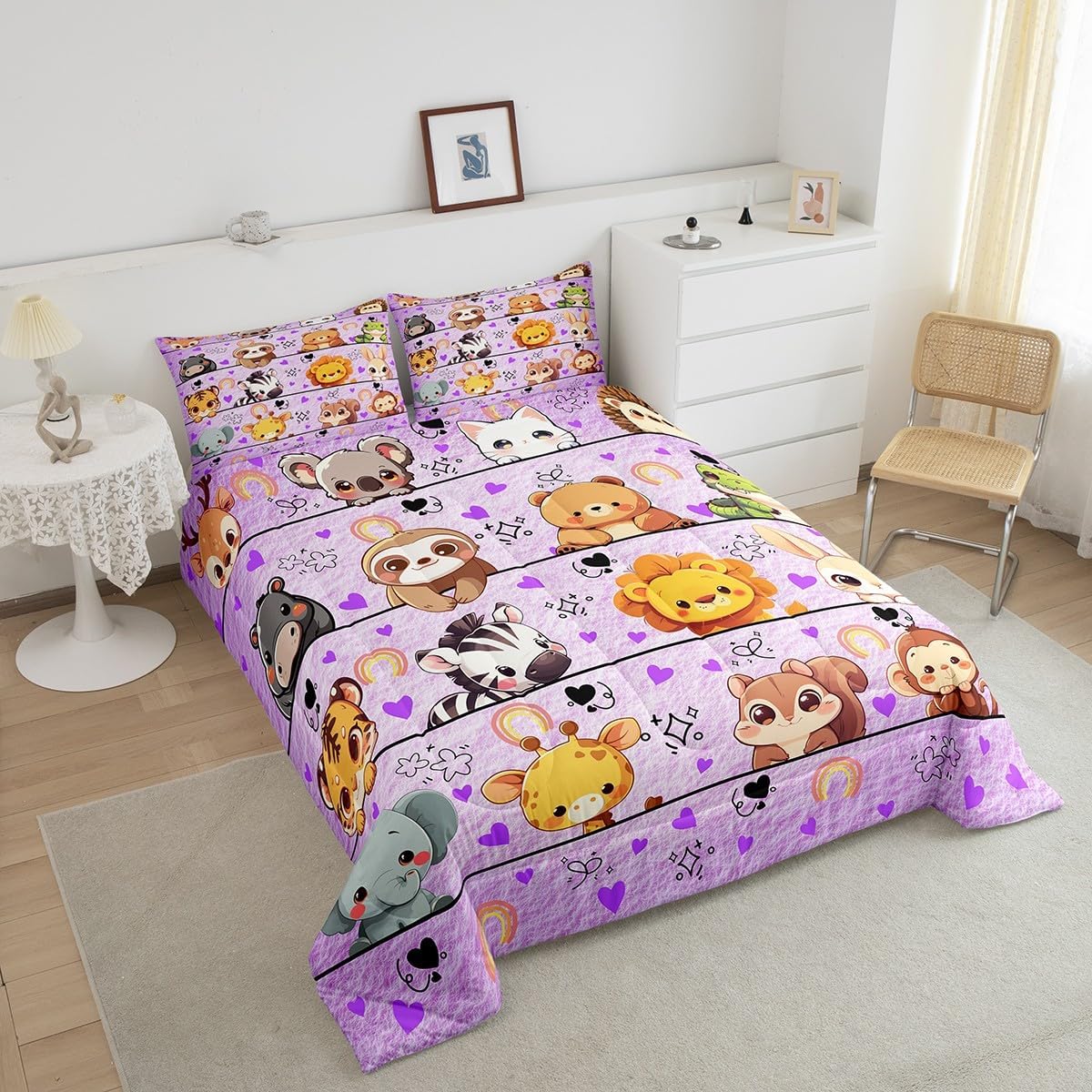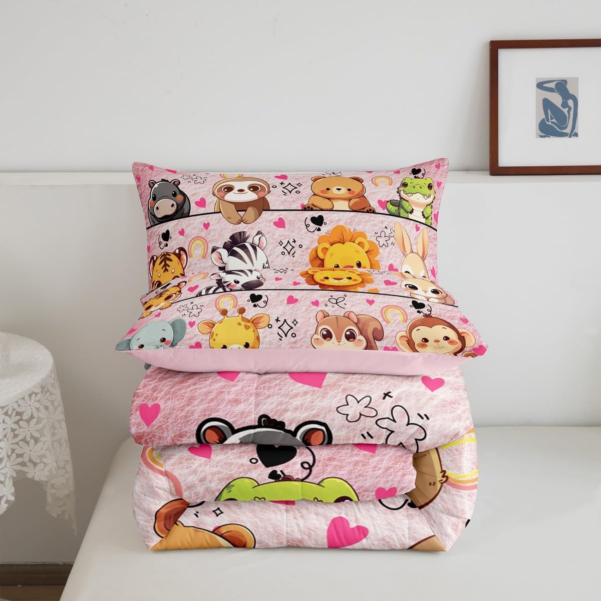 Package Include: Comforter and Pillowcase. Makeover your bedrooms every season with our Comforter sets. Perfect item for your room, girls boys youth room, master bedroom. Size Information: Twin size down comforter 68"W x 90"L and 1 pillow case 30"W x 20"L. 2pcs with 1 Bed Comforter and 1 Pillowcases in A Bag Full size down comforter 79"W x 90"L and 2 pillow cases 30"W x 20"L. 3pcs with 1 Bed Comforter and 2 Pillowcases in A Bag Queen size down comforter 90"W x 90"L and 2 pillow cases 30"W x 20"L. 3pcs with 1 Bed Comforter and 2 Pillowcases in A Bag King size down comforter 104"W x 90"L and 2 pillow cases 36"W x 20"L. 3pcs with 1 Bed Comforter and 2 Pillowcases in A Bag Useful and practical A luxurious product for homes, dorm rooms, hotels, guest rooms. Practical to use for being polyester, feels like cotton which is Super Soft and Breathable. No chemicals used, No dye substance harming the health of you or your family. Unique design: Vivid Colors won't fade thanks to new 3D digital printing methods. These unique designs match well with various color palettes of your rugs, curtains, headboard, furniture, and all other decor accessories. Personalized: As manufacturers of digital printed home textiles, we follow current trends and bring you the latest home fashion. More Decor: Search our store to get more christmas theme, new year theme, autumn fall theme, any holiday theme, modern abstract, farmhouse rustic theme, simple pattern, garden flowers etc. home decoration. Warm Tips: 1. Please allow 1-3cm error due to manual measurement. 2. Actual color may vary from the color on your screen due to monitor color restrictions.