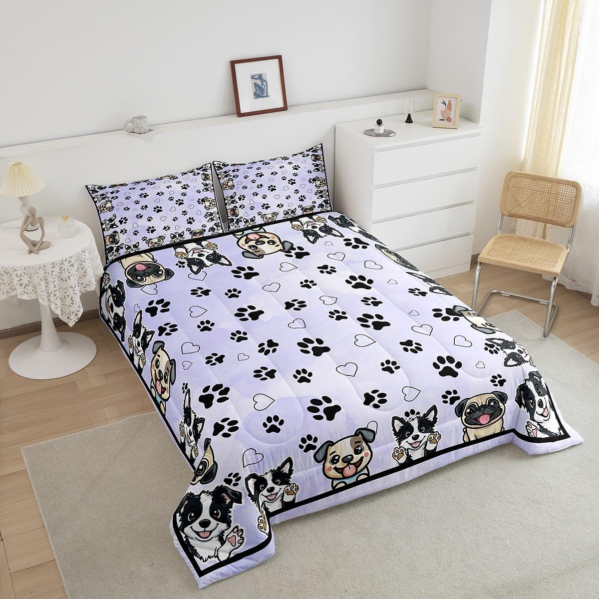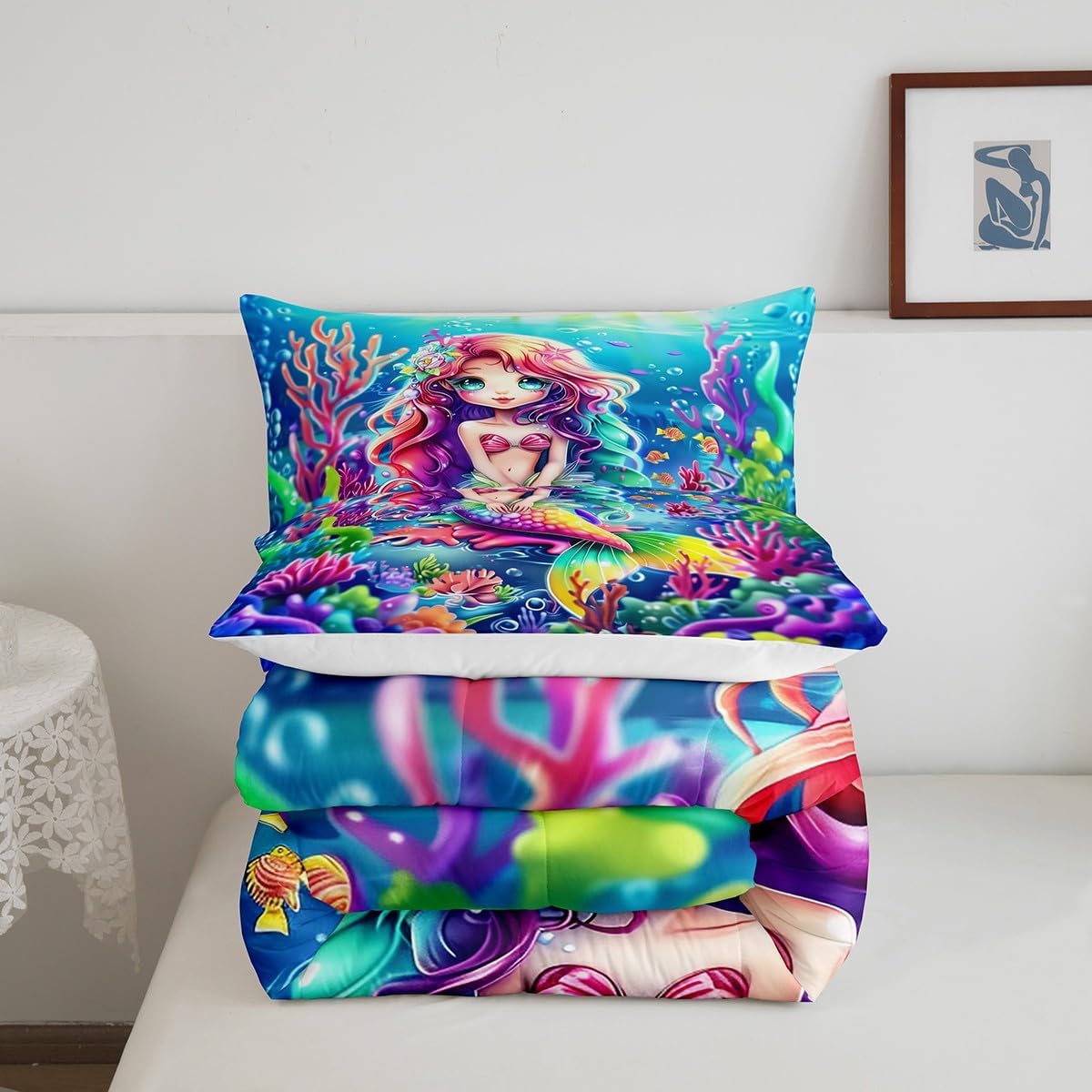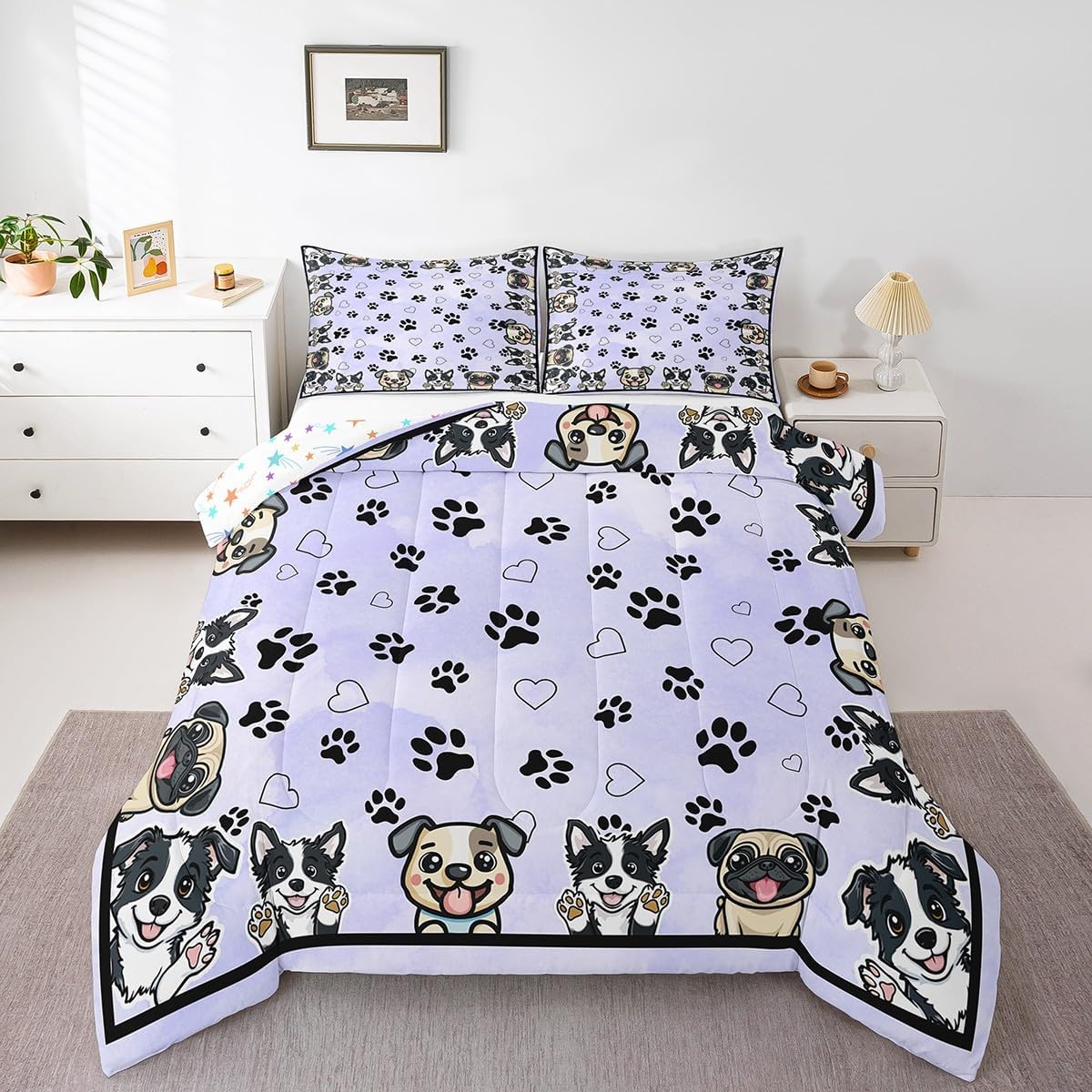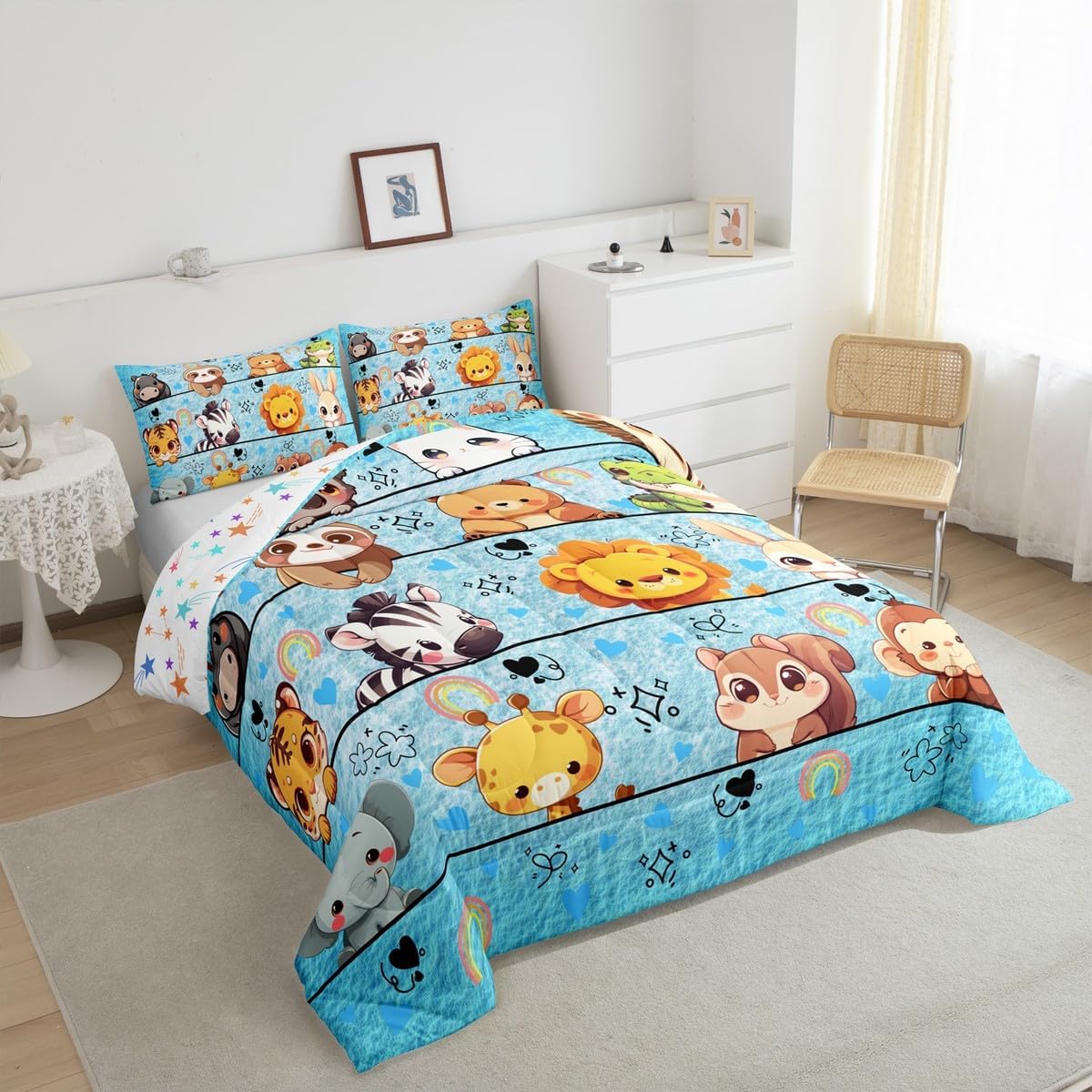 Package Include: Comforter and Pillowcase. Makeover your bedrooms every season with our Comforter sets. Perfect item for your room, girls boys youth room, master bedroom. Size Information: Twin size down comforter 68"W x 90"L and 1 pillow case 30"W x 20"L. 2pcs with 1 Bed Comforter and 1 Pillowcases in A Bag Full size down comforter 79"W x 90"L and 2 pillow cases 30"W x 20"L. 3pcs with 1 Bed Comforter and 2 Pillowcases in A Bag Queen size down comforter 90"W x 90"L and 2 pillow cases 30"W x 20"L. 3pcs with 1 Bed Comforter and 2 Pillowcases in A Bag King size down comforter 104"W x 90"L and 2 pillow cases 36"W x 20"L. 3pcs with 1 Bed Comforter and 2 Pillowcases in A Bag Useful and practical A luxurious product for homes, dorm rooms, hotels, guest rooms. Practical to use for being polyester, feels like cotton which is Super Soft and Breathable. No chemicals used, No dye substance harming the health of you or your family. Unique design: Vivid Colors won't fade thanks to new 3D digital printing methods. These unique designs match well with various color palettes of your rugs, curtains, headboard, furniture, and all other decor accessories. Personalized: As manufacturers of digital printed home textiles, we follow current trends and bring you the latest home fashion. More Decor: Search our store to get more christmas theme, new year theme, autumn fall theme, any holiday theme, modern abstract, farmhouse rustic theme, simple pattern, garden flowers etc. home decoration. Warm Tips: 1. Please allow 1-3cm error due to manual measurement. 2. Actual color may vary from the color on your screen due to monitor color restrictions.