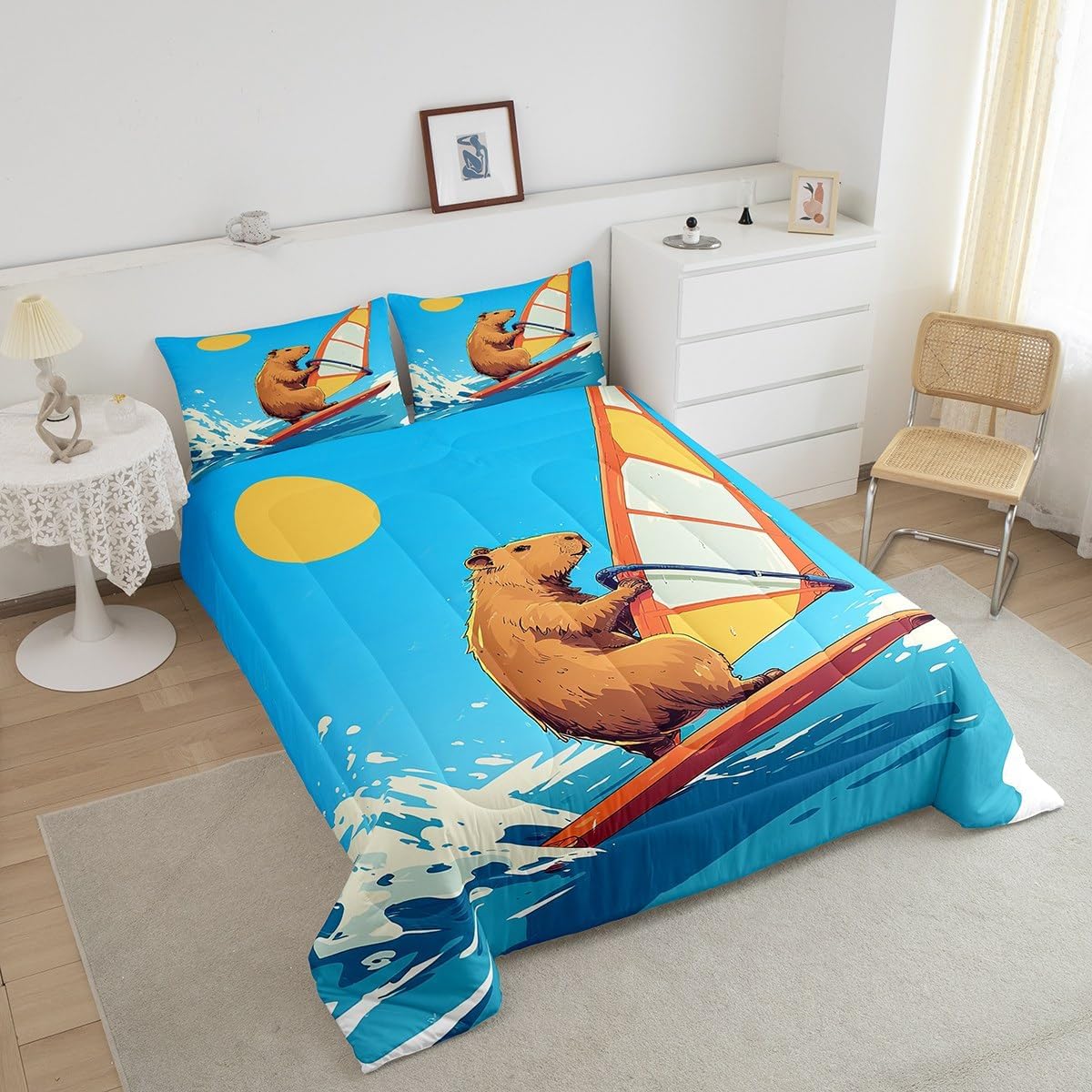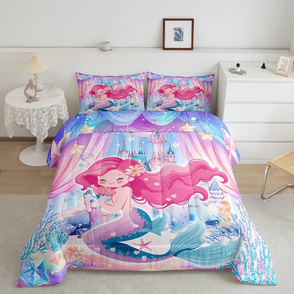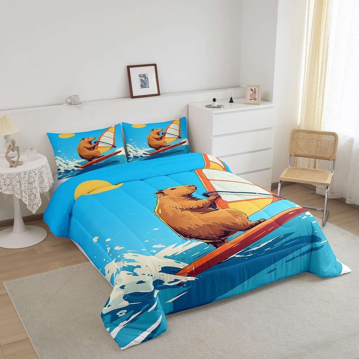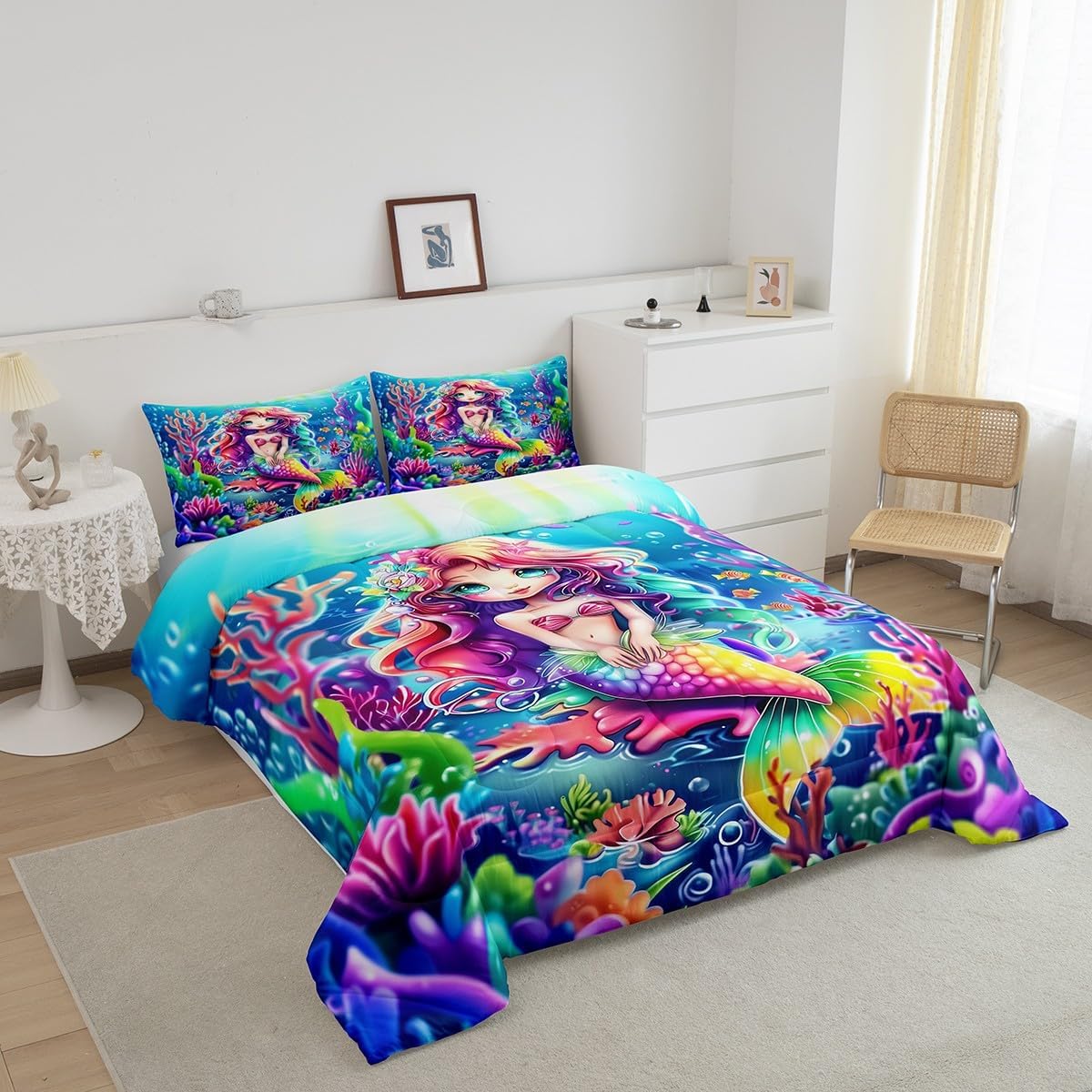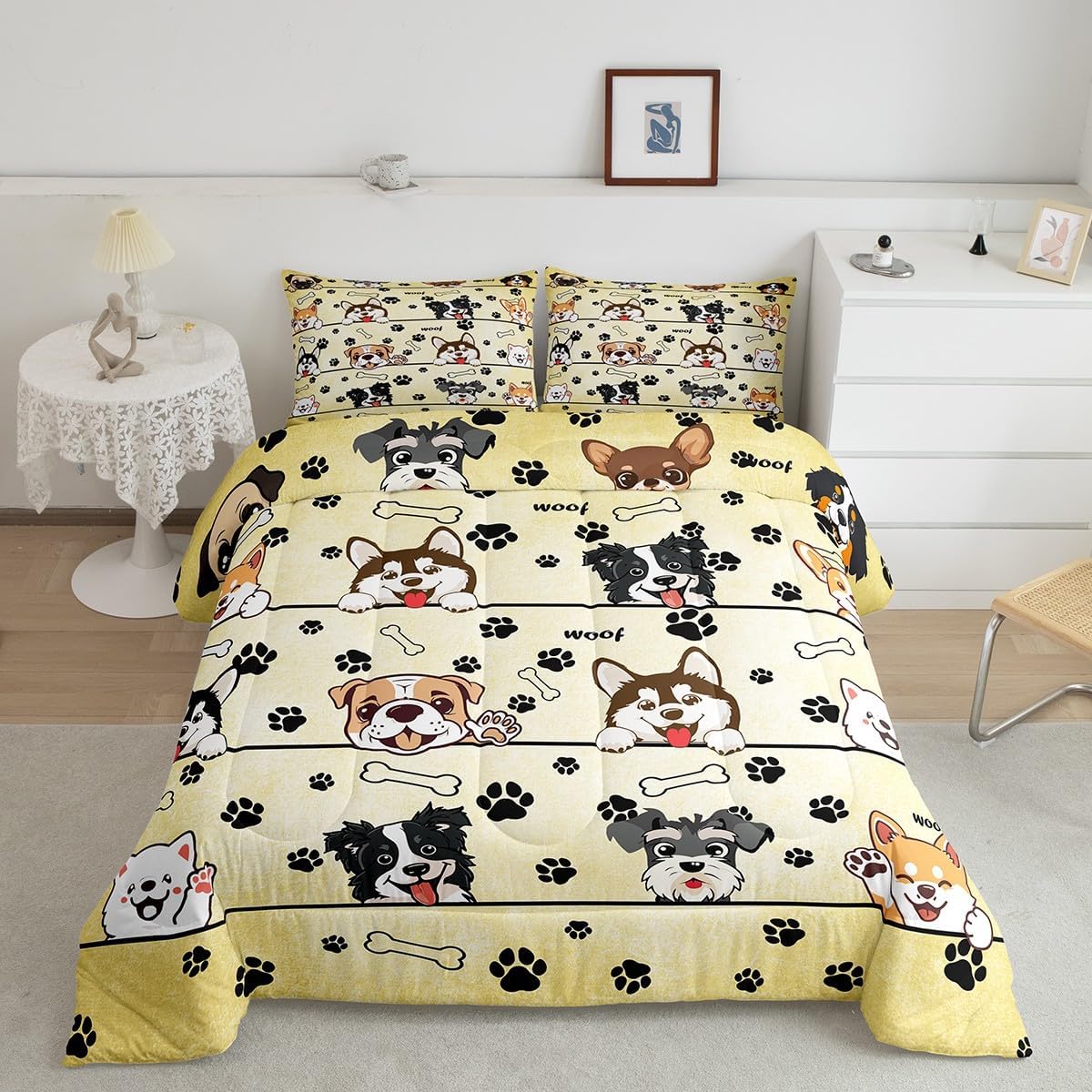Package Include: Comforter and Pillowcase. Makeover your bedrooms every season with our Comforter sets. Perfect item for your room, girls boys youth room, master bedroom. Size Information: Twin size down comforter 68"W x 90"L and 1 pillow case 30"W x 20"L. 2pcs with 1 Bed Comforter and 1 Pillowcases in A Bag Full size down comforter 79"W x 90"L and 2 pillow cases 30"W x 20"L. 3pcs with 1 Bed Comforter and 2 Pillowcases in A Bag Queen size down comforter 90"W x 90"L and 2 pillow cases 30"W x 20"L. 3pcs with 1 Bed Comforter and 2 Pillowcases in A Bag King size down comforter 104"W x 90"L and 2 pillow cases 36"W x 20"L. 3pcs with 1 Bed Comforter and 2 Pillowcases in A Bag Useful and practical A luxurious product for homes, dorm rooms, hotels, guest rooms. Practical to use for being polyester, feels like cotton which is Super Soft and Breathable. No chemicals used, No dye substance harming the health of you or your family. Unique design: Vivid Colors won't fade thanks to new 3D digital printing methods. These unique designs match well with various color palettes of your rugs, curtains, headboard, furniture, and all other decor accessories. Personalized: As manufacturers of digital printed home textiles, we follow current trends and bring you the latest home fashion. More Decor: Search our store to get more christmas theme, new year theme, autumn fall theme, any holiday theme, modern abstract, farmhouse rustic theme, simple pattern, garden flowers etc. home decoration. Warm Tips: 1. Please allow 1-3cm error due to manual measurement. 2. Actual color may vary from the color on your screen due to monitor color restrictions.