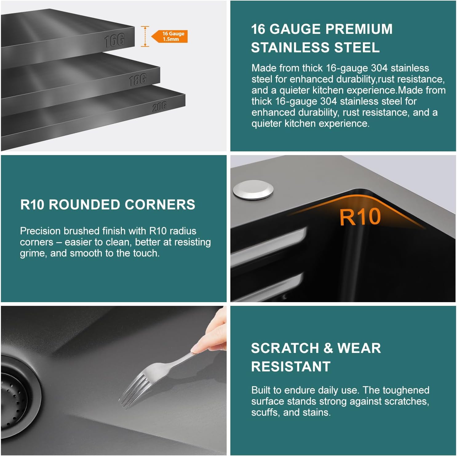 | Included Components | Stainless Steel Bottom Rinse Grids, Stainless Steel Colander, Drain Assembly、Quality Faucet, Roll up Drying Rack、Wooden Cutting Board, 33x22 Drop In Waterfall Kitchen Sink |