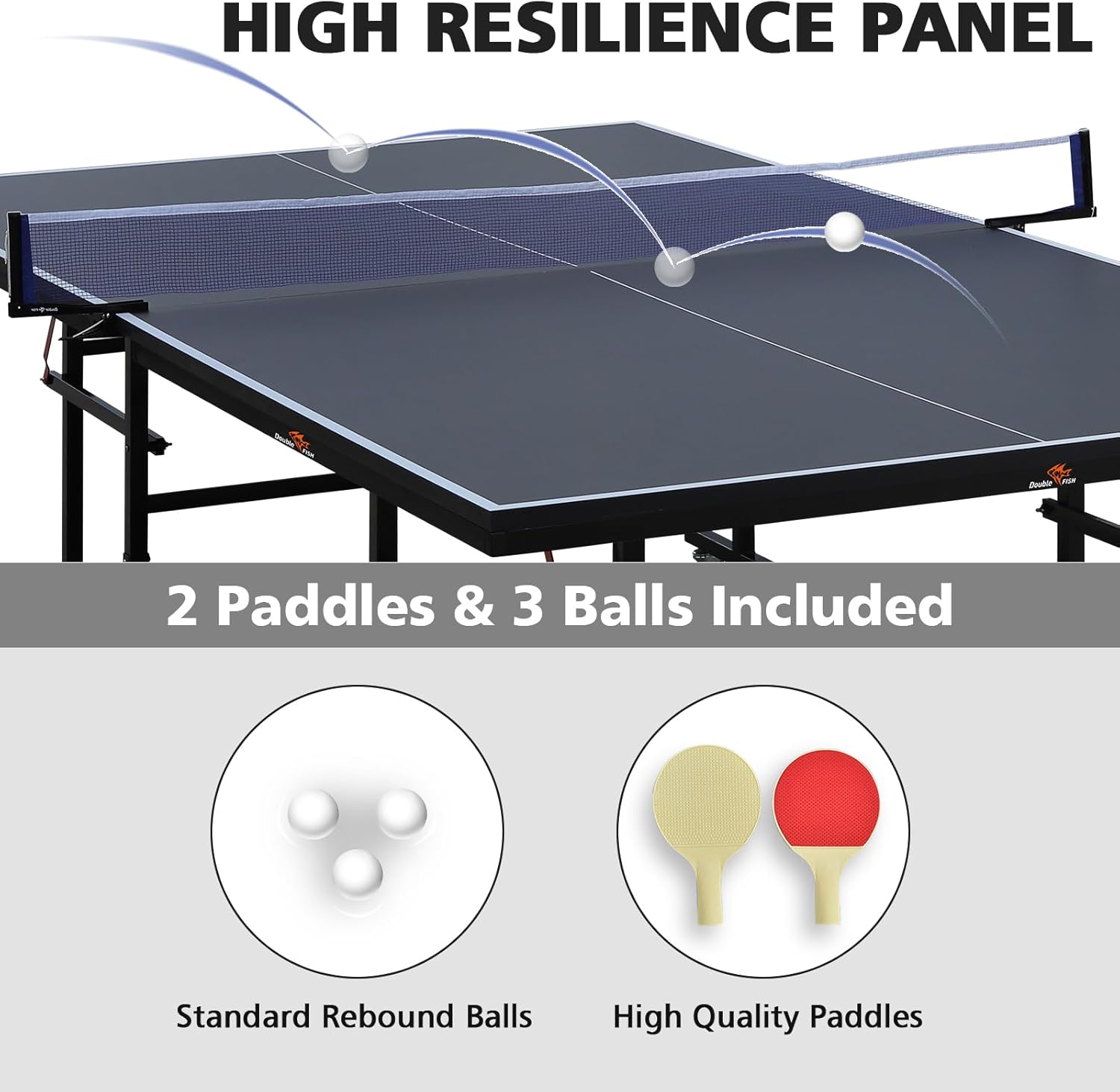 • 【Durable & Stable Construction】 Ping Pong Tables built with a heavy-duty alloy steel frame and 0.59" MDF tabletop for excellent bounce consistency, stability, and long-lasting performance. Oversized steel support aprons keep the surface flat and sturdy during intense matches.ideal for recreational players looking for a higher performance level.