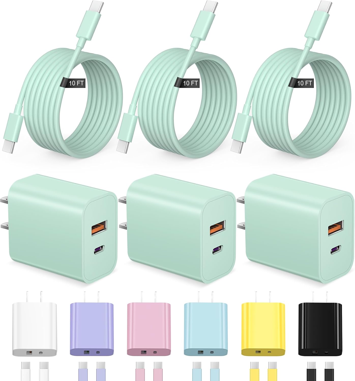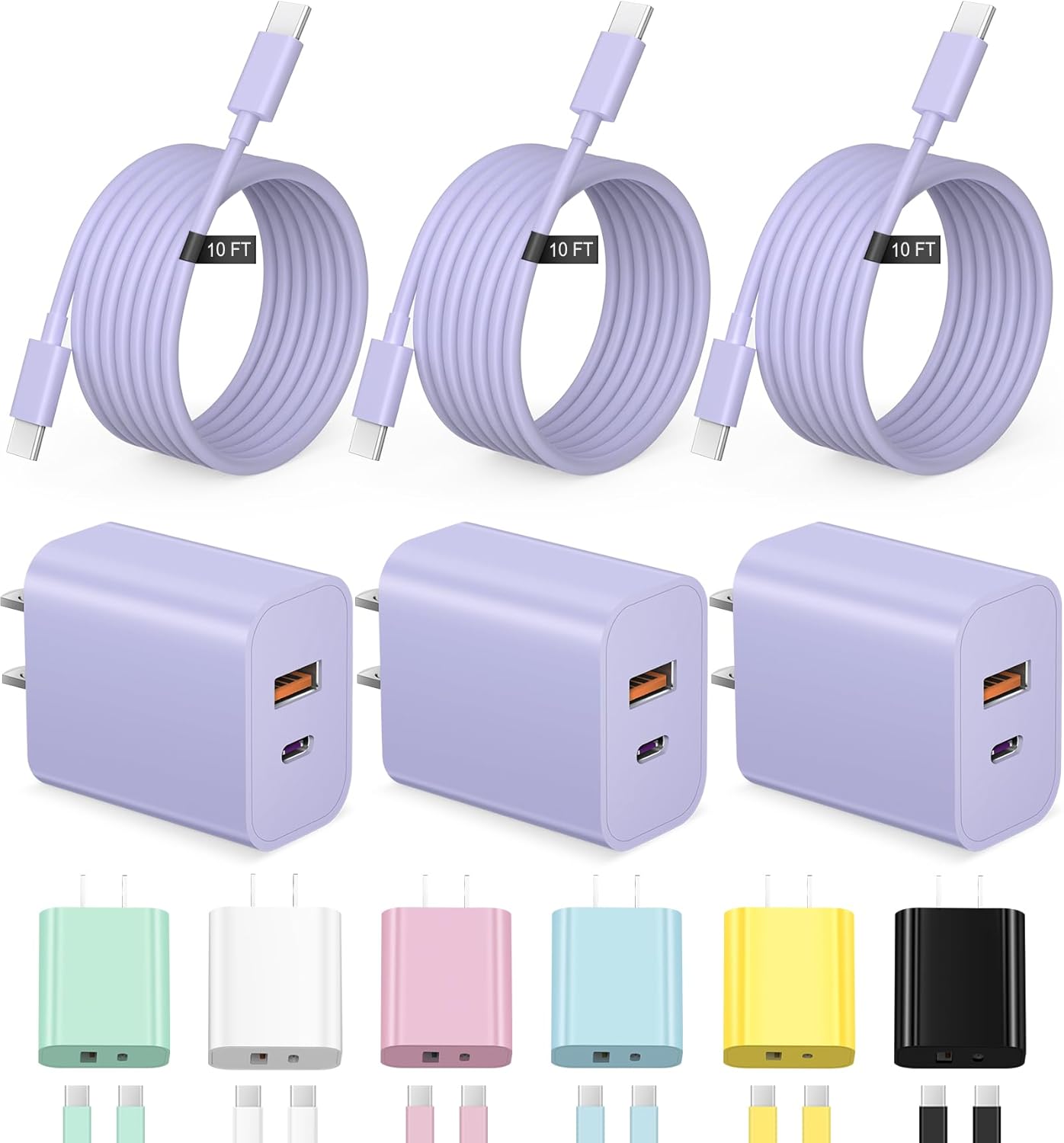 | BuiltIn Media | 3x10FT Type C Cables and 3x20W USB A/C Wall Chargers |