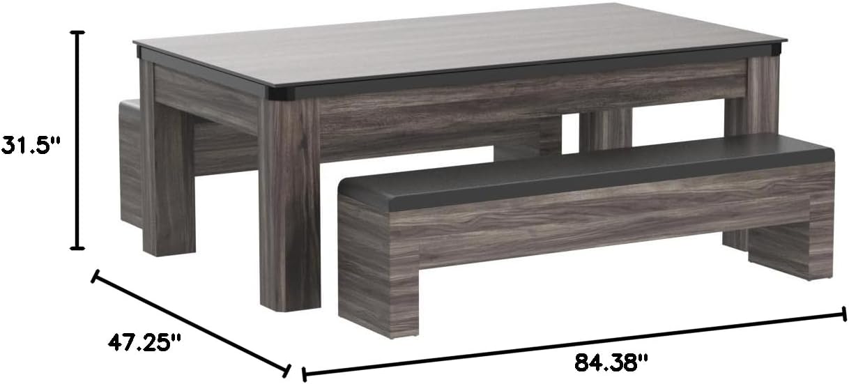 Add the ultimate multi-functional table to your game room that is ideal for the entire family. The Hampton 3-in-1 combination table includes billiards, table tennis, and a Dining table with dual storage bench seating all in one. The Hampton features a modern contemporary Grey Wood grain finish with heavy-duty quality construction. Two upholstered Storage benches offer comfortable seating and ample storage for all of your gaming accessories. Remove or flip over the dining top to instantly convert your table to a full-size billiard or table tennis table for hours of fun. The table comes ready to play with all accessories included required to play table tennis and billiards. The space-saving design allows the storage benches to conveniently nest under the table when finished playing and entertaining.