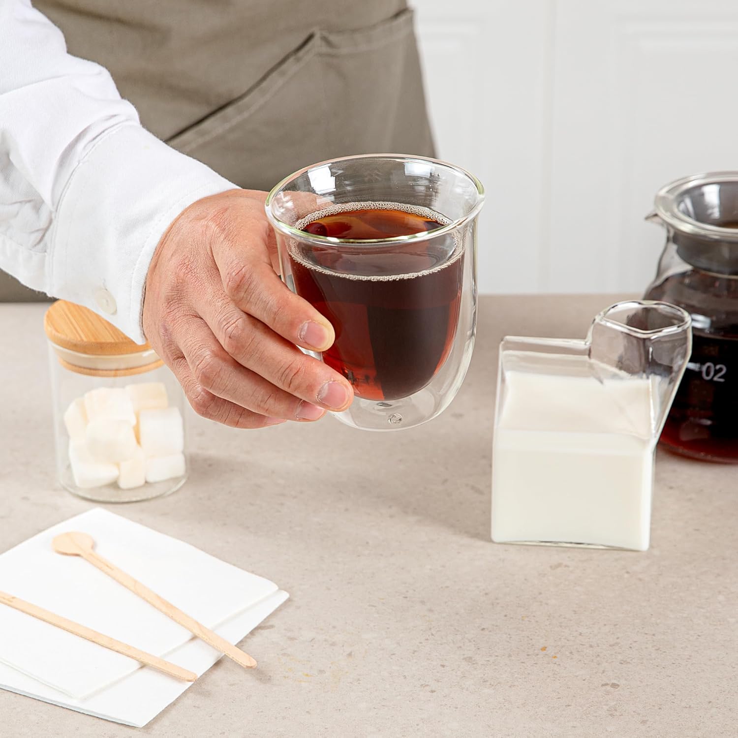 Enhance beverage service with expertly designed drinkware. The Forma Professional Double-Wall Insulation Double Wall Coffee Cup combines a sleek 3.5-inch round shape with a double-wall design to keep beverages hot or cold longer, ensuring guest satisfaction with consistent temperatures. Crafted from borosilicate glass, this cup resists thermal shock, making it a durable choice for foodservice professionals who need a borosilicate glass cup that can handle both hot and cold beverages seamlessly. Its 6.8-ounce capacity is perfect for standard coffee servings, and its microwave and freezer compatibility make preparation and storage processes more efficient The reusable coffee cup is also dishwasher safe, minimizing cleaning time and labor costs, allowing staff to focus on enhancing the customer experience. Invest in quality and operational efficiency with this versatile coffee cup. Each order includes 12 Forma Professional Double-Wall Insulation Double Wall Coffee Cups.