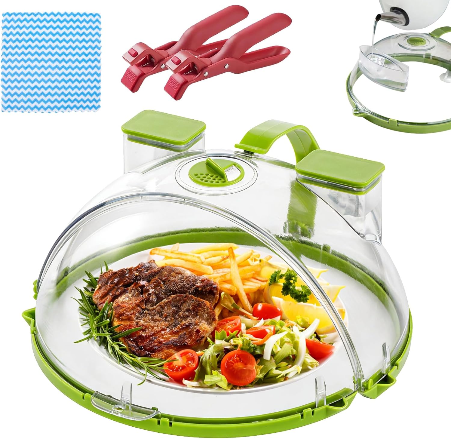 Specification: Name: Microwave Splatter Cover for Food Material: PC Color: Green Product Dimensions: 26*26*11cm / 10.3*10.3*4.3 inches Product Weight: 0.56kg Function: Heat preservation, dust proof Package Includes: 1pcs * Microwave Splatter Cover for Food 2pcs * Anti-scald Clips 1pcs * Cleaning Cloth Note: 1. Due to not the same monitors and lighting effects, the actual color of the item maybe slightly not the same from the color shown on the picture. Please understand. 2. Due to manual measurement, there is a certain error in the product size.
