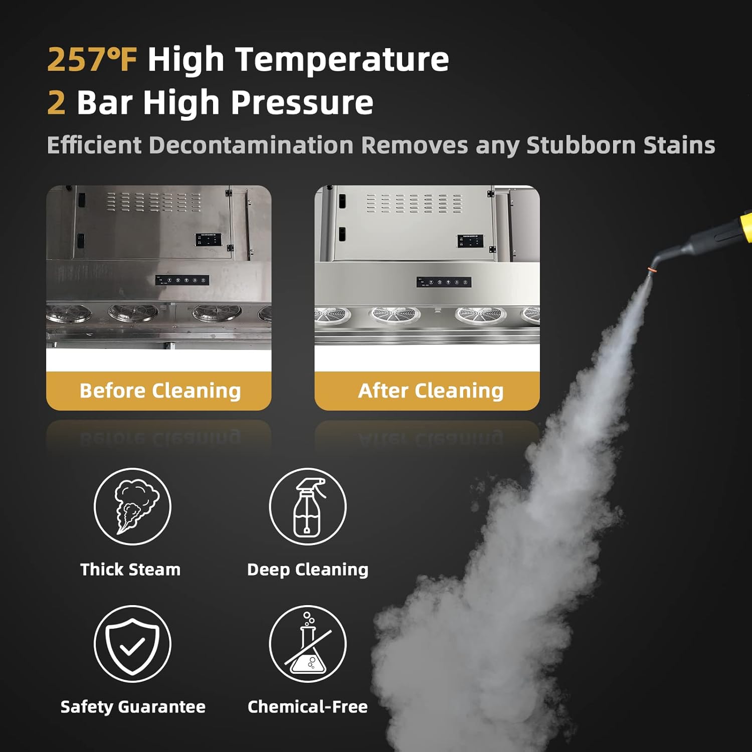 Description:This steam mop cleaner uses powerful high-pressure steam to clean without any harmful chemicals. It is suitable for sealed surfaces, such as ceramic, granite, marble and hardwood floors, and also ideal for fabrics including: mattress, duvet cover, sofa fabric, etc. Equipped with different types of brush heads and nozzles, the household steamer can penetrate deep into crevices and cracks to eliminate stains and dust. It should be noted that the initial sprayed steam may contain a lot of water droplets, and the steam will return to normal after 3-5 seconds. If you find that the water is running out during cleaning, you are able to add water without cutting off the power supply. To help clean the whole house more quickly and easily, our portable steam cleaner is here waiting for your call!Features:350ml large water volume allows it to run for a long time100% chemical free with no harmful fumes and chemical residues257℉ hot steam can easily dissolve the toughest grease and stainsChildren lock and safety cap provide more protection for your safetyLightweight body makes it convenient for indoor and outdoor useCome with 17pieces accessories to clean different areas in your homeAutomatically cut off the power when the heater is out of water.Specifications:Color: Yellow, Blue, GreyMaterial: PPOverall Dimensions: 12.5" x 5" x 10"(L x W x H)Voltage: 120V/60HzPower: 1400WTank Capacity: 350mlSteam Temperature: 257℉Steam Pressure: 2 BarPower Cord Length: 106"Net Weight: 5 lbs