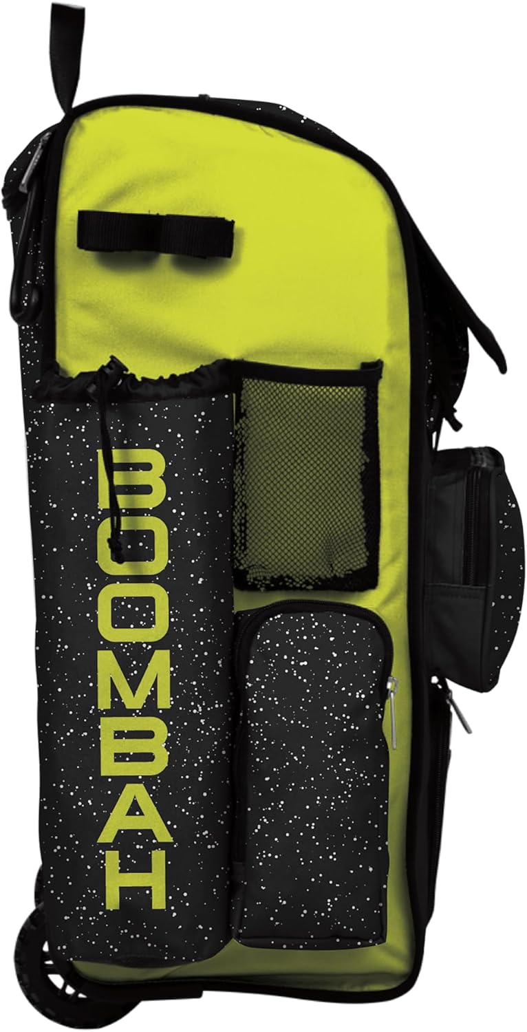 Boombah Rolling Superpack Baseball/Softball Bat Bag - 23-1/2" x 13-1/2" x 9-1/2" - Multiple Colors - Telescopic Handle and Holds 4 Bats The new and improved Superpack Rolling Bat Bag is an extremely durable and versatile bag for diamond sports with a focus on convenience and longevity. Key features include: - Built to Last: Engineered with the highest quality materials, our products are made to work as hard as you do - Heavy Duty Hardware: Zippers, straps, and fence hooks built for the rigorous abuse of the season - Improved Base Chassis: New molded plastic base is significantly stronger and stiffer, preventing your bag from slumping when full. It also contributes to keeping the handle in place and maintaining its strength - Larger Heavy Duty Wheels: Now 40% larger than before - now nearly 4 inches wide. The new improved wheels lift the bottom of the bag over a half inch higher off the ground to prevent scraping on dirt and gravel - Reinforced J-Hooks: Easy to hang on the fence - Shoe Compartment: Keep items separate from the dirt and dust on your shoes by storing them in an individual compartment - Telescopic Handle with Additional Handle Position: Telescoping handle has an additional, shorter height option for younger players. The handle can now be adjusted to a position 4 inches shorter than the standard, fully-extended length - Wear-Resistance Fabric: Heavy duty fabric has been added to the bottom of the bag to further improve the lifespan of the bag. The material is specifically designed to resist scrapes/tearsAbout Boombah: Boombah baseball / softball products are part of our huge family of sporting gear, apparel and accessories. We design and manufacturer our own line of high quality sports equipment and gear for the sports you love.